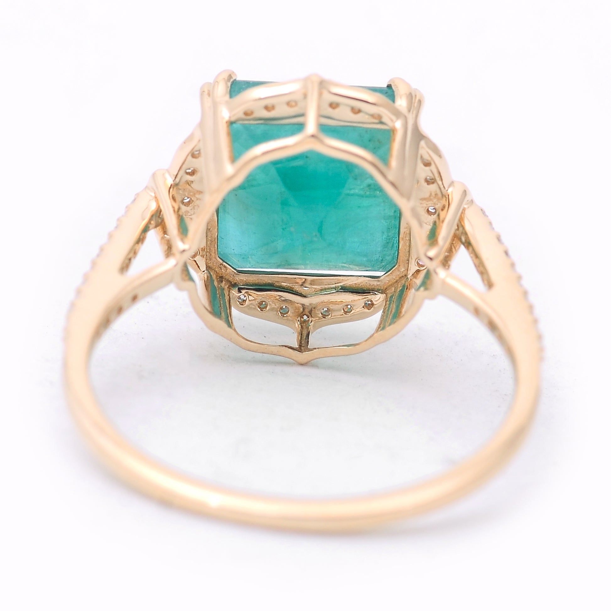 3.75 Ct Octagon Step Cut Natural Emerald 14K Gold Ring