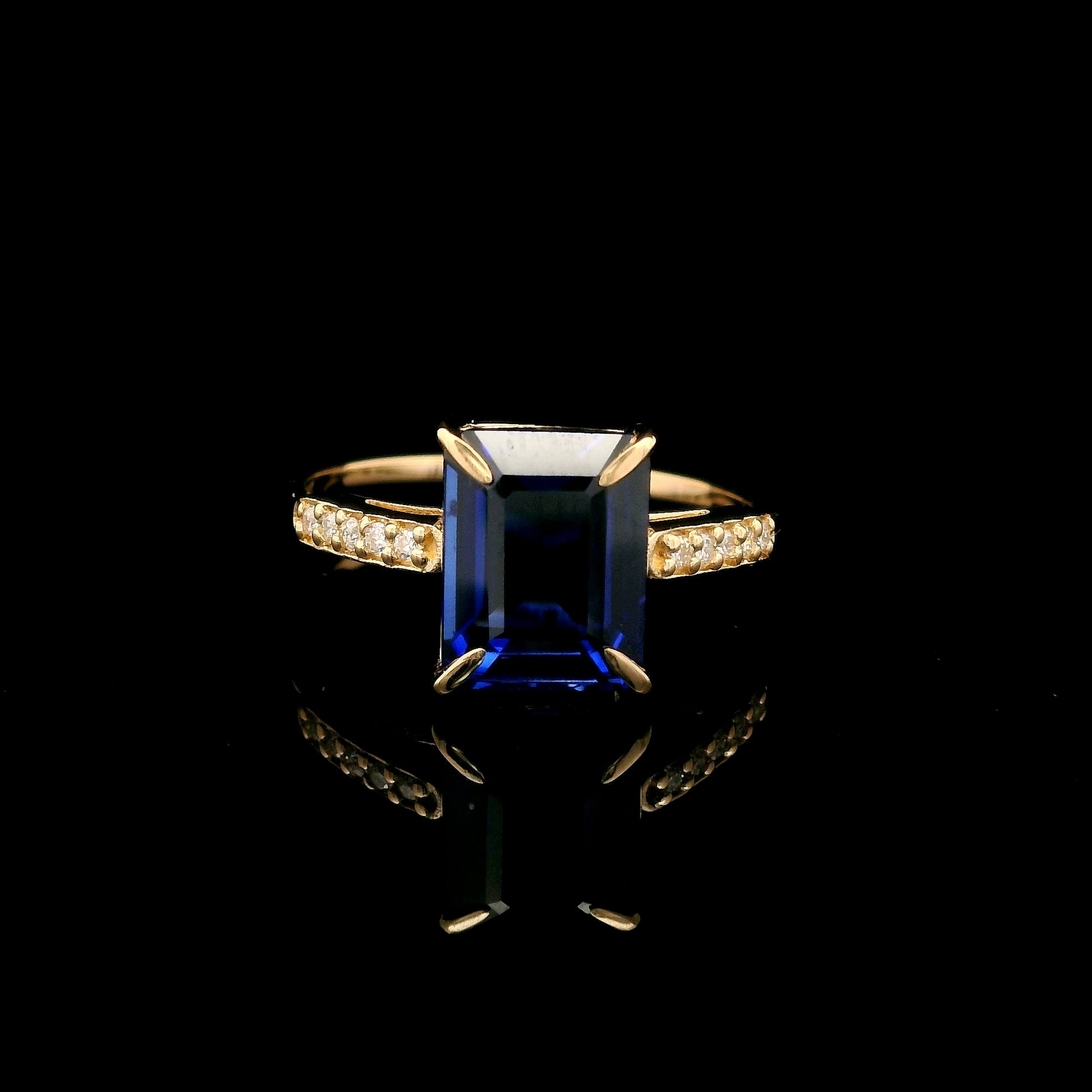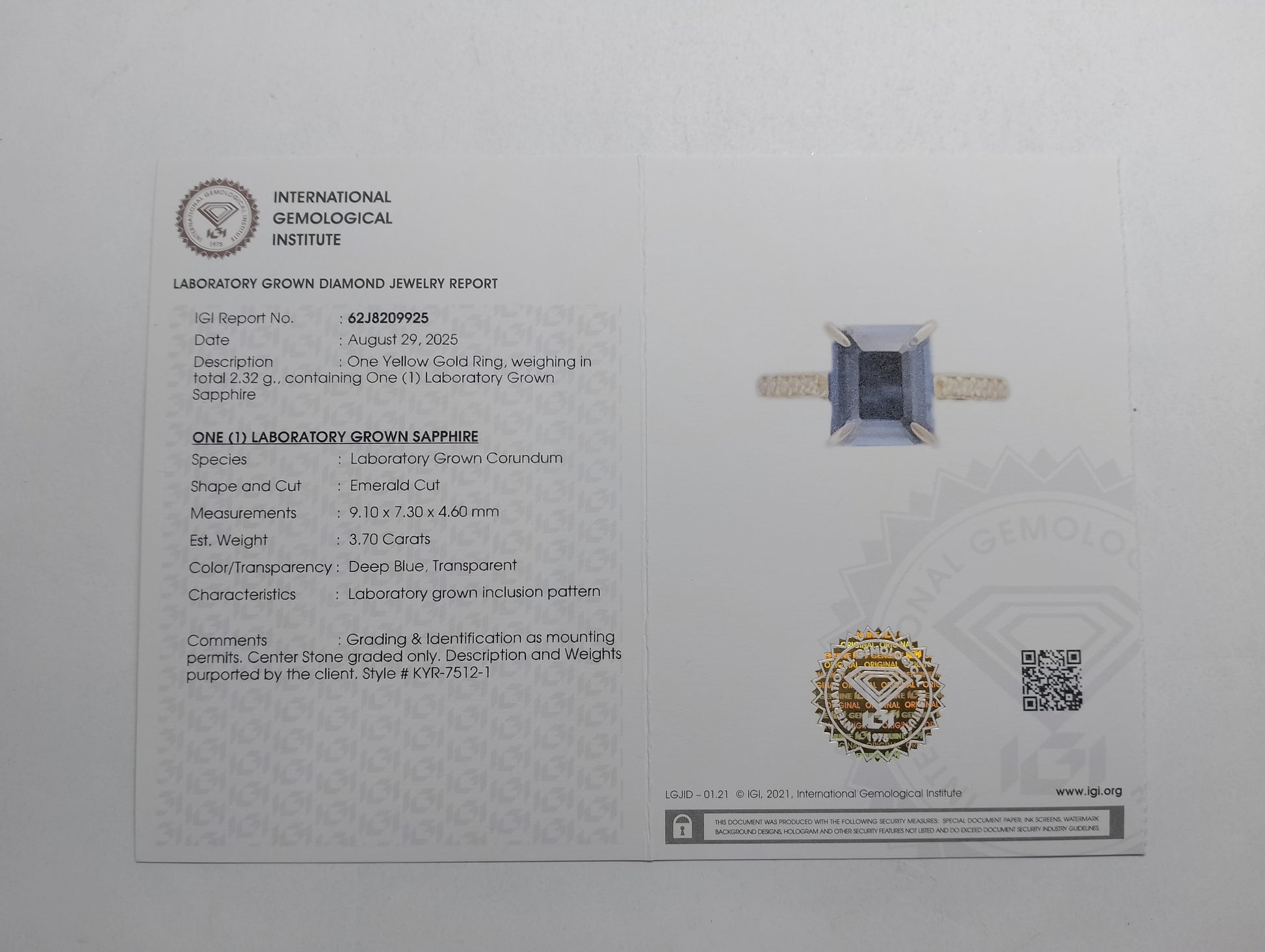 3.76 Ct Emerald Cut Lab Grown Sapphire 14K Gold Ring