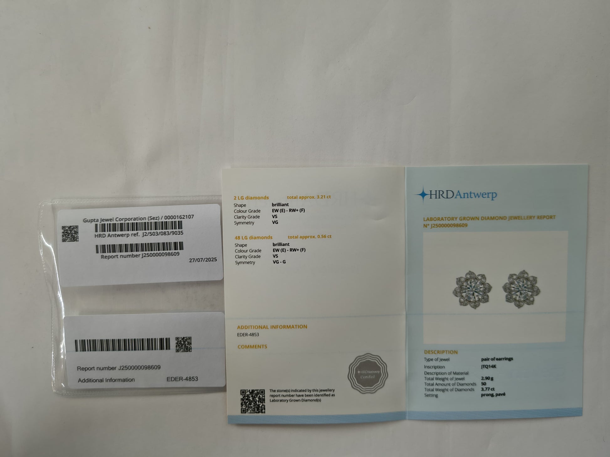 3.77-Carat Lab-Grown Diamond Round Cut Brilliant Earrings ? HRD Certified