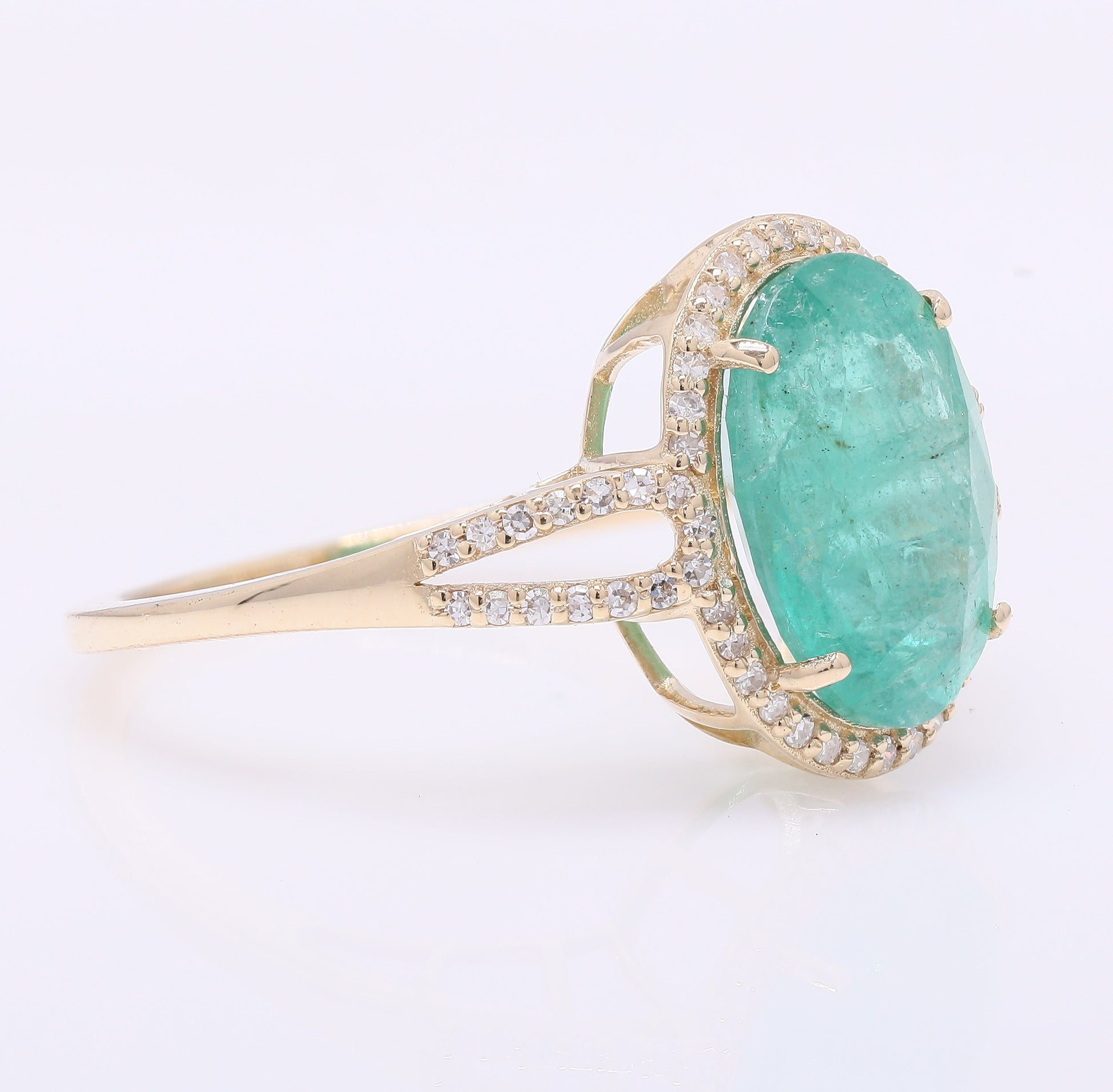 3.77 Ct Oval Mixed Cut Natural Emerald 14K Gold Ring