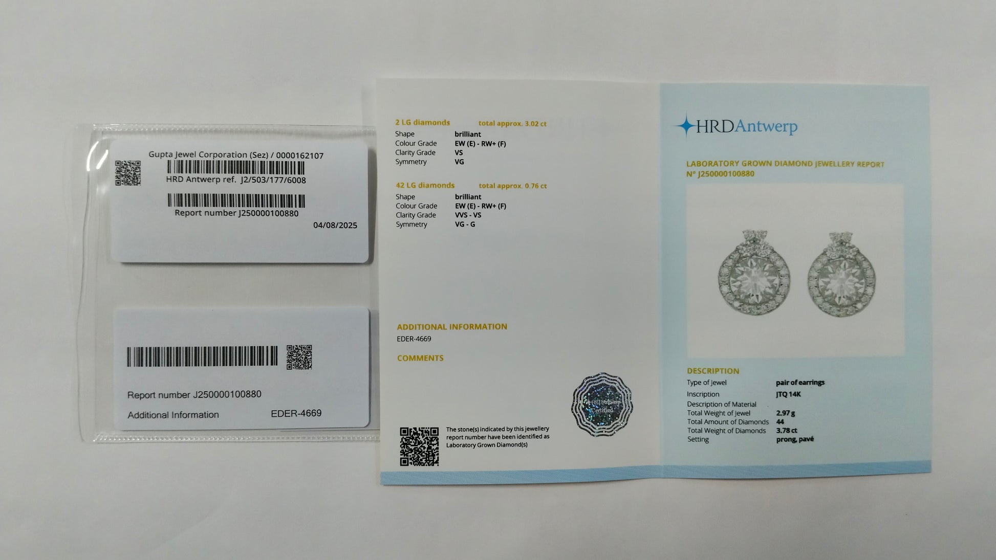 3.78-Carat Lab-Grown Diamond Round Cut Brilliant Earrings ? HRD Certified
