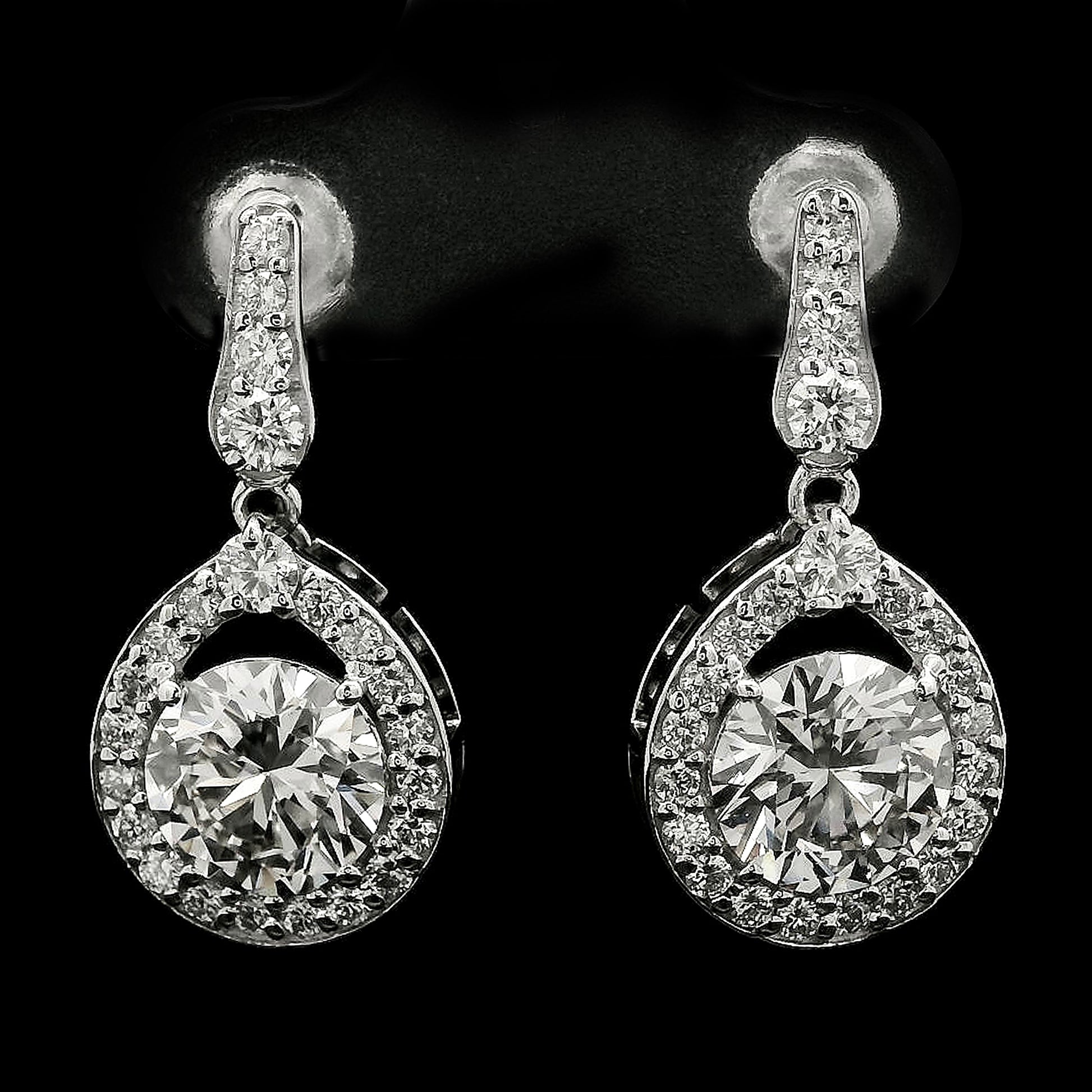 3.79-Carat Lab-Grown Diamond Round Cut Brilliant Earrings