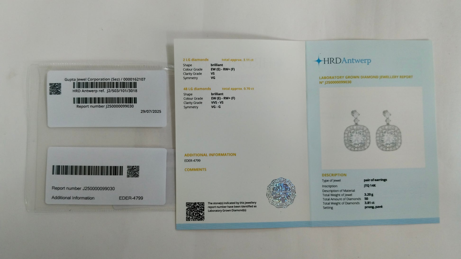 3.81-Carat Lab-Grown Diamond Round Cut Brilliant Earrings ? HRD Certified