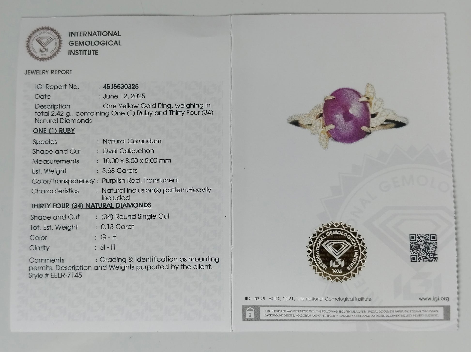 - Lab Name: International Gemological Institute (IGI)