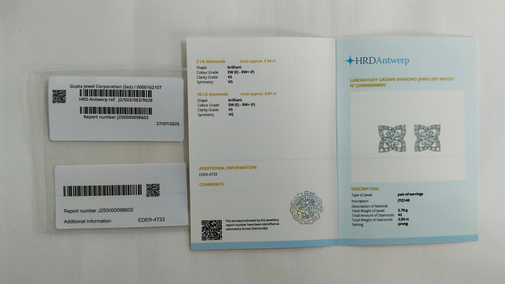 3.83 Carats Lab Grown Diamond 14K Gold Earrings