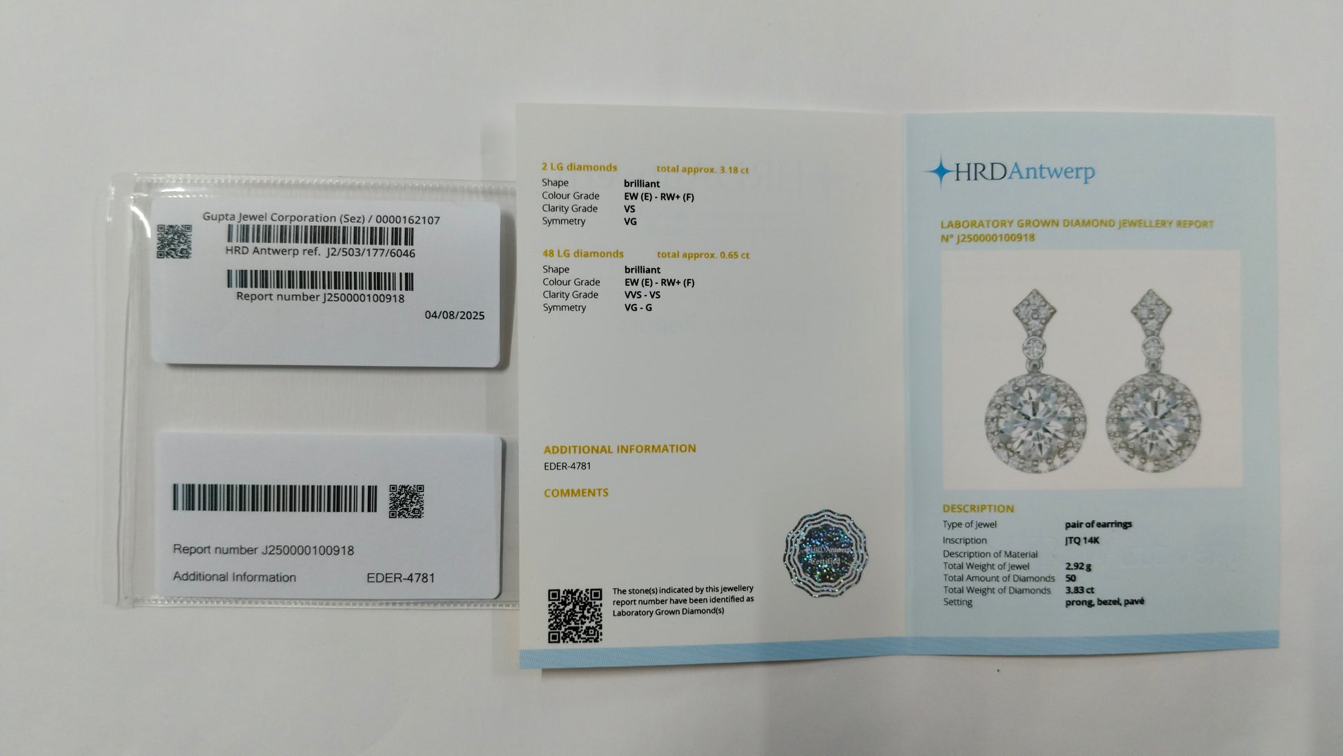 3.83-Carat Lab-Grown Diamond Round Cut Brilliant Earrings ? HRD Certified
