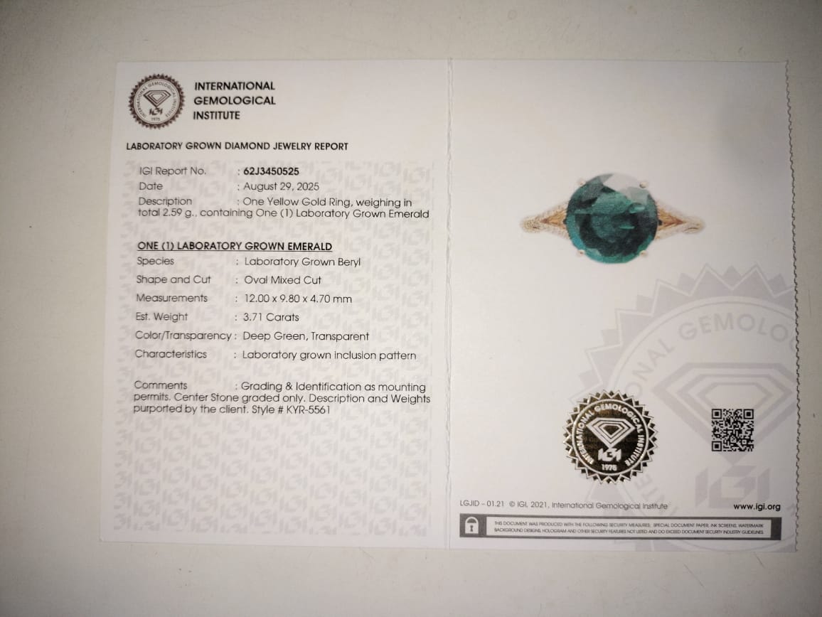 3.83 Ct Oval Mixed Cut Lab Grown Emerald 14K Gold Ring