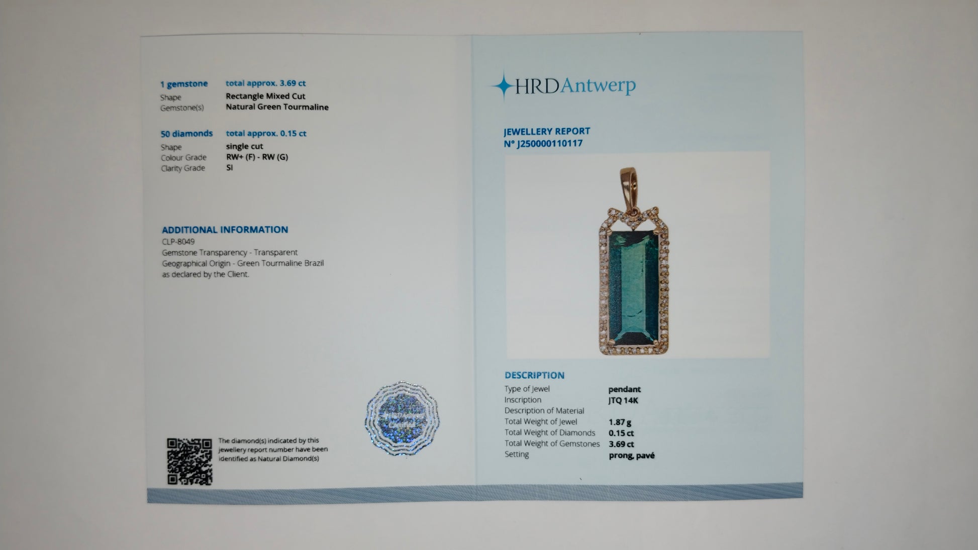 - Certificate Number J250000110117
