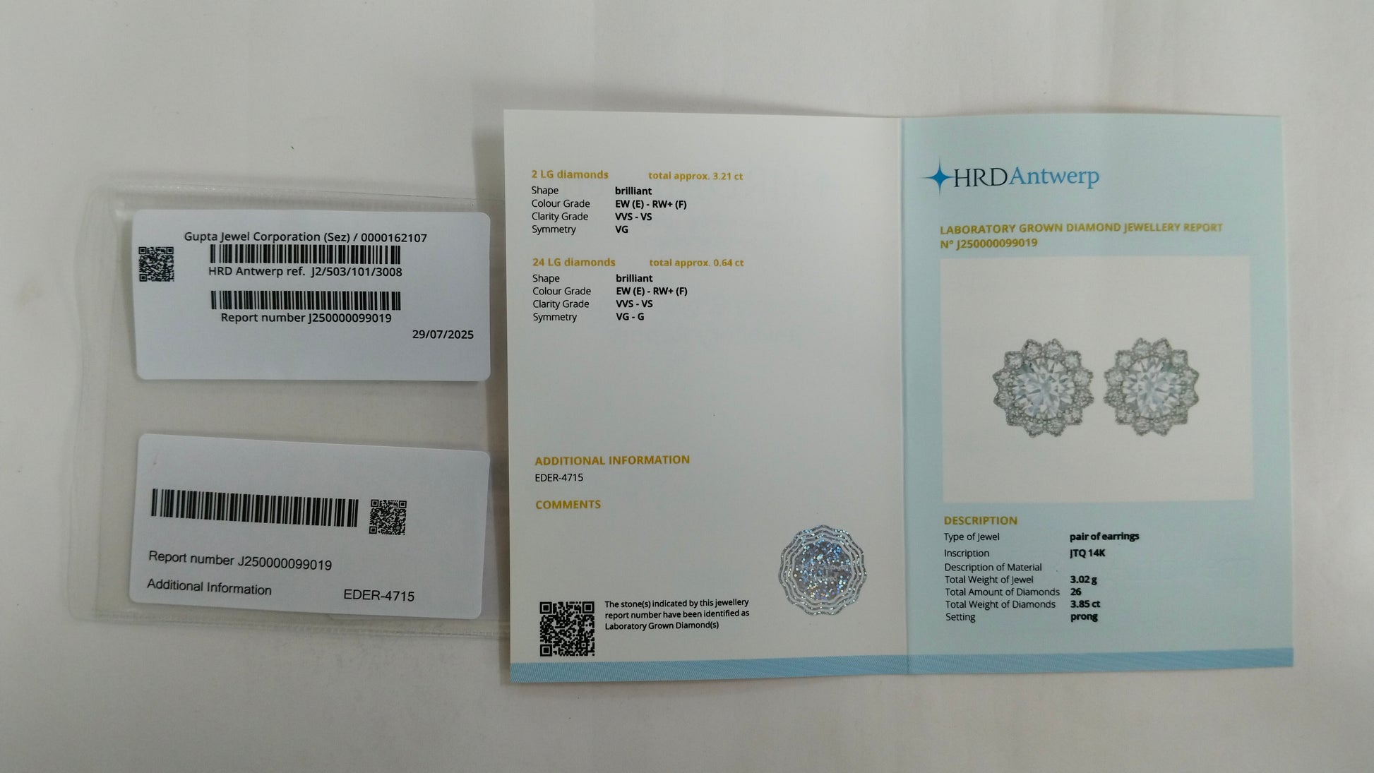 3.85 Carats Lab Grown Diamond 14K Gold Earrings