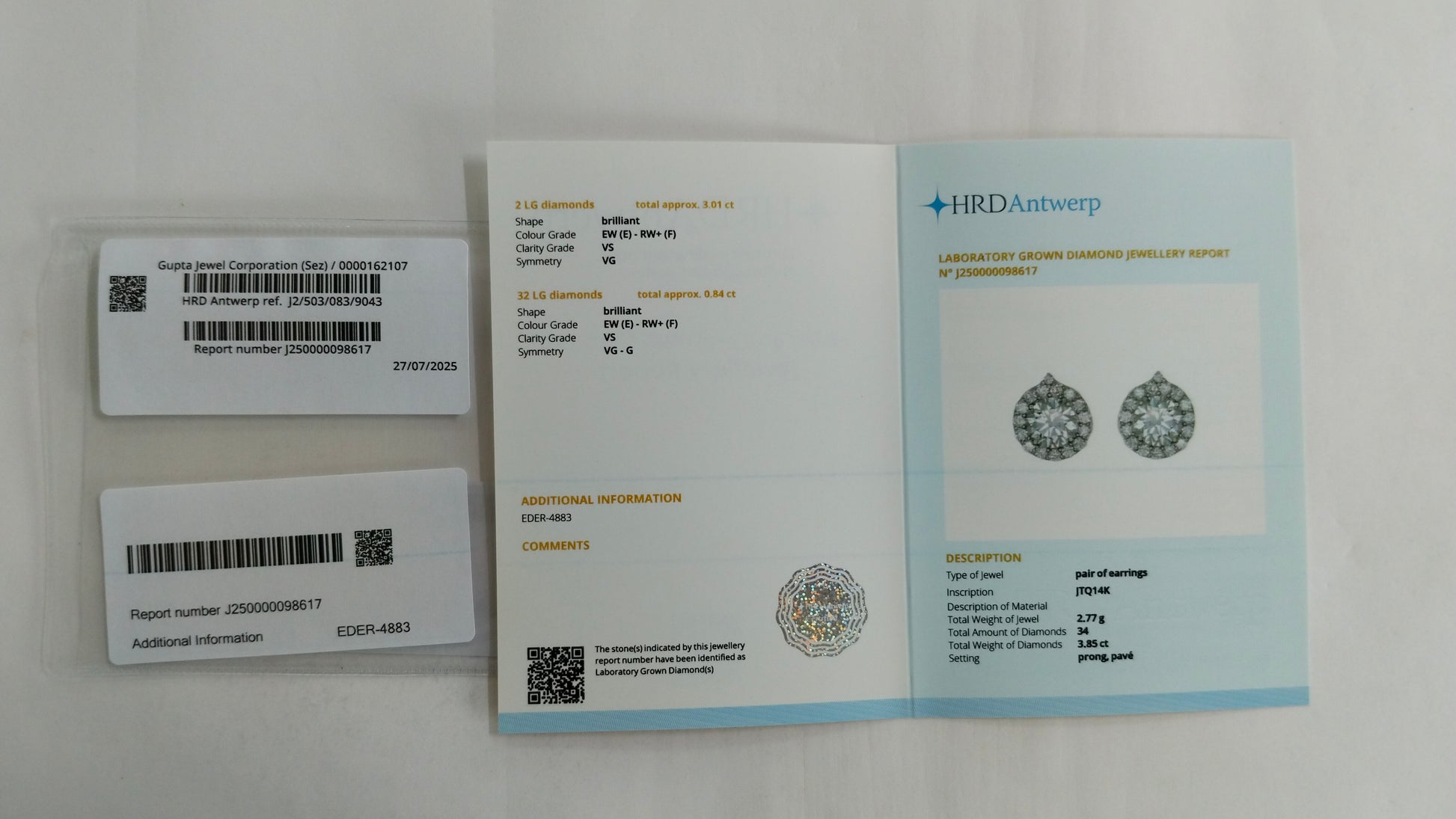3.85-Carat Lab-Grown Diamond Round Brilliant Earrings - HRD Certified