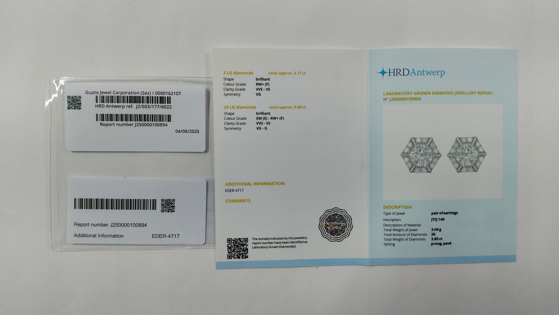 3.85-Carat Lab-Grown Diamond Round Cut Brilliant Earrings ? HRD Certified