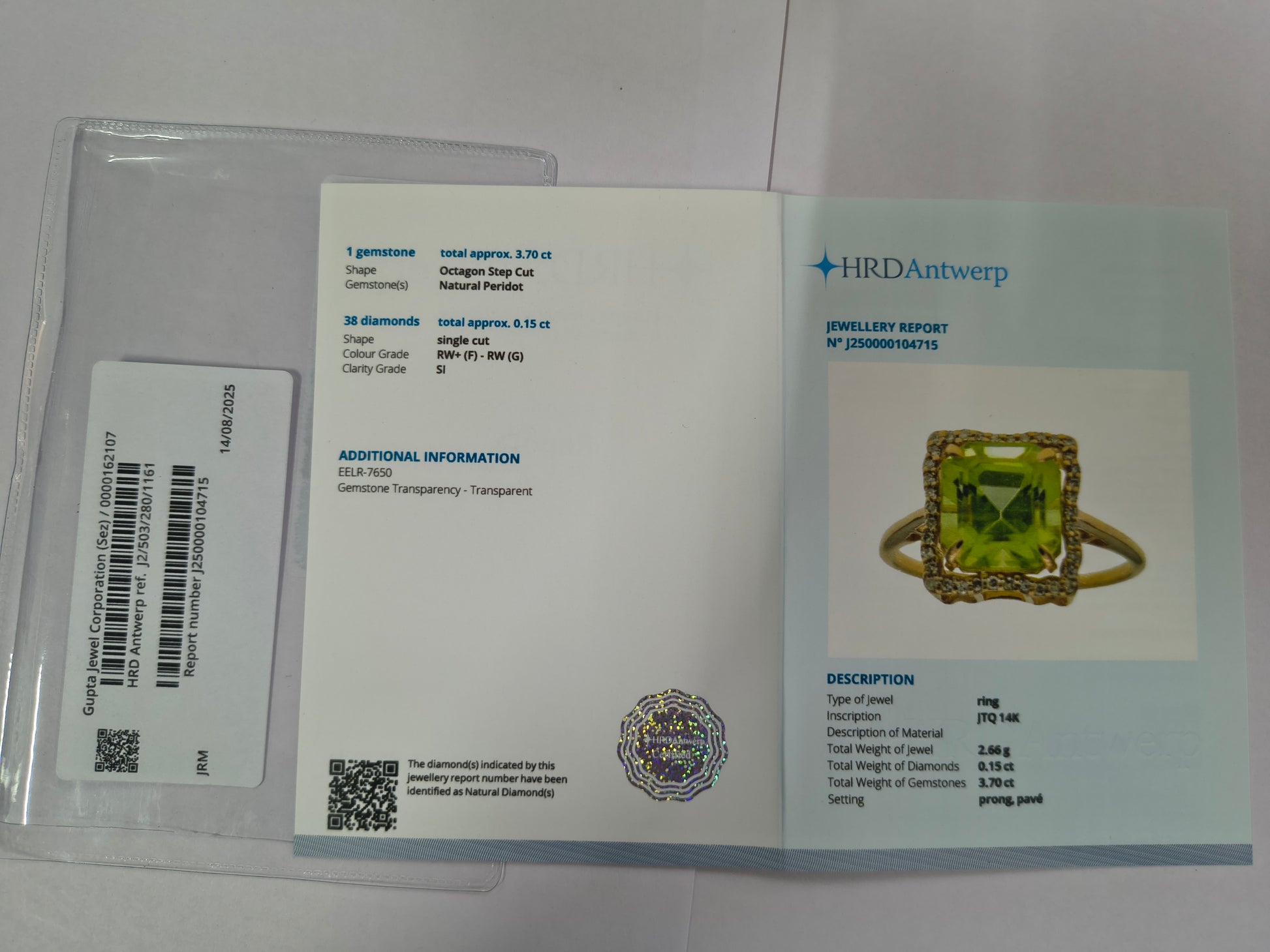 - Certificate Number J250000104715