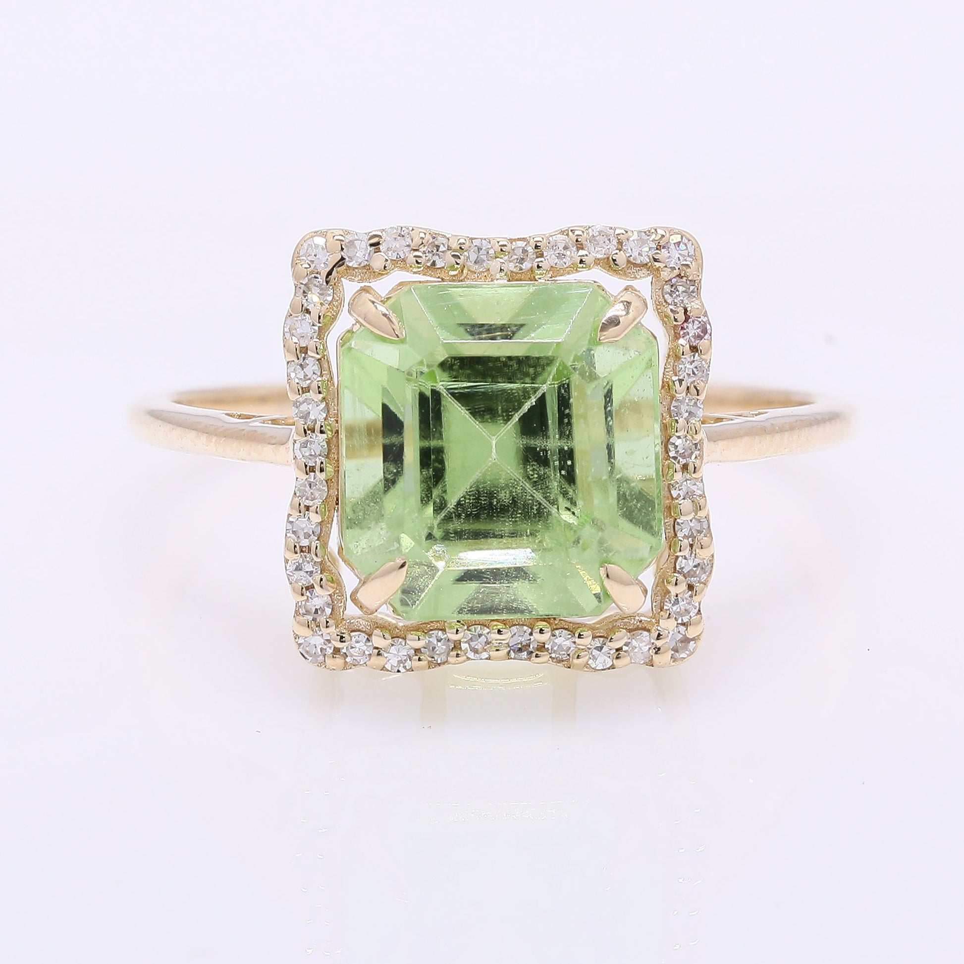 3.85 Ct Octagon Step Cut Natural Peridot 14K Gold Ring