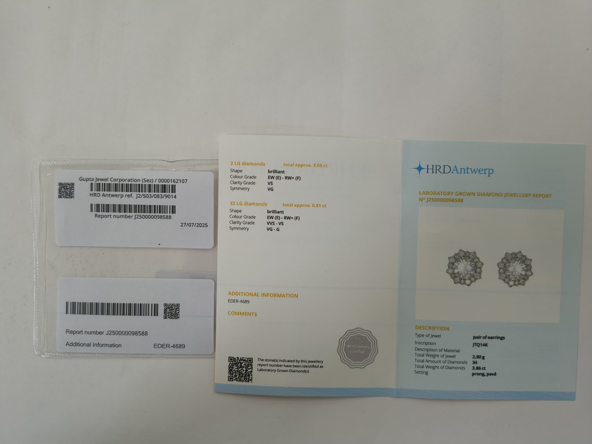 3.86 Carats Lab Grown Diamond 14K Gold Earrings