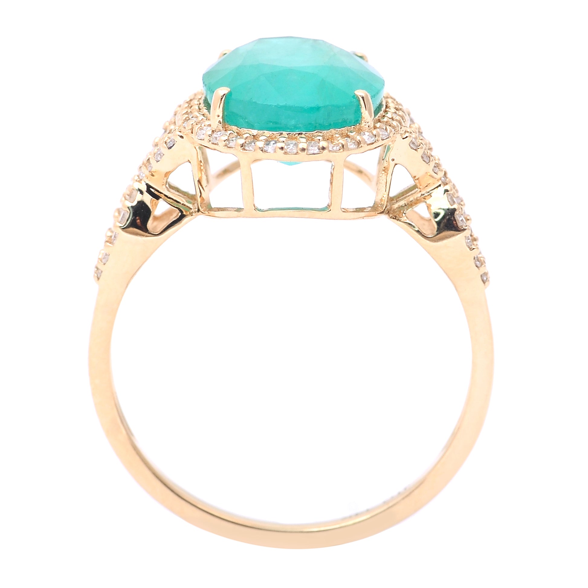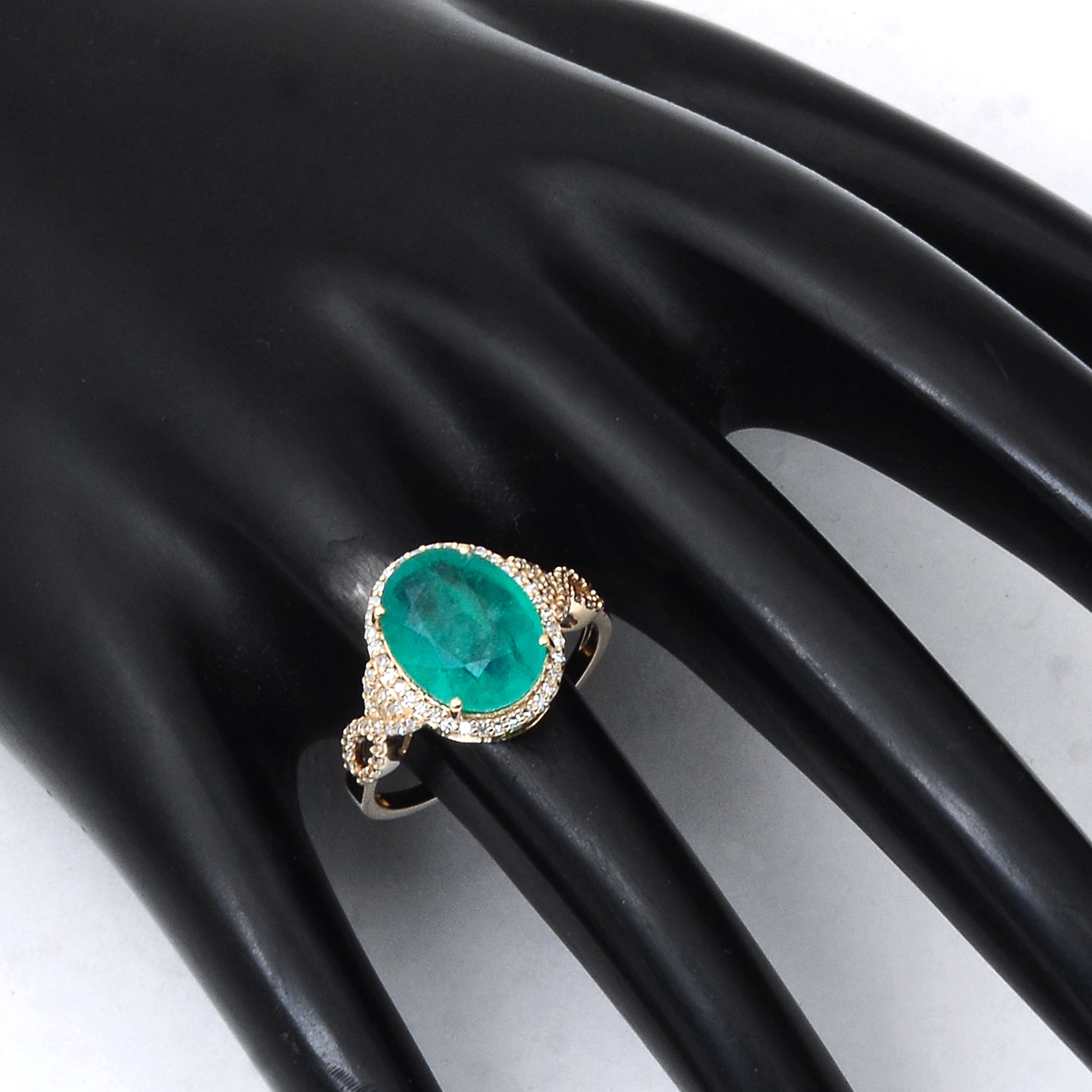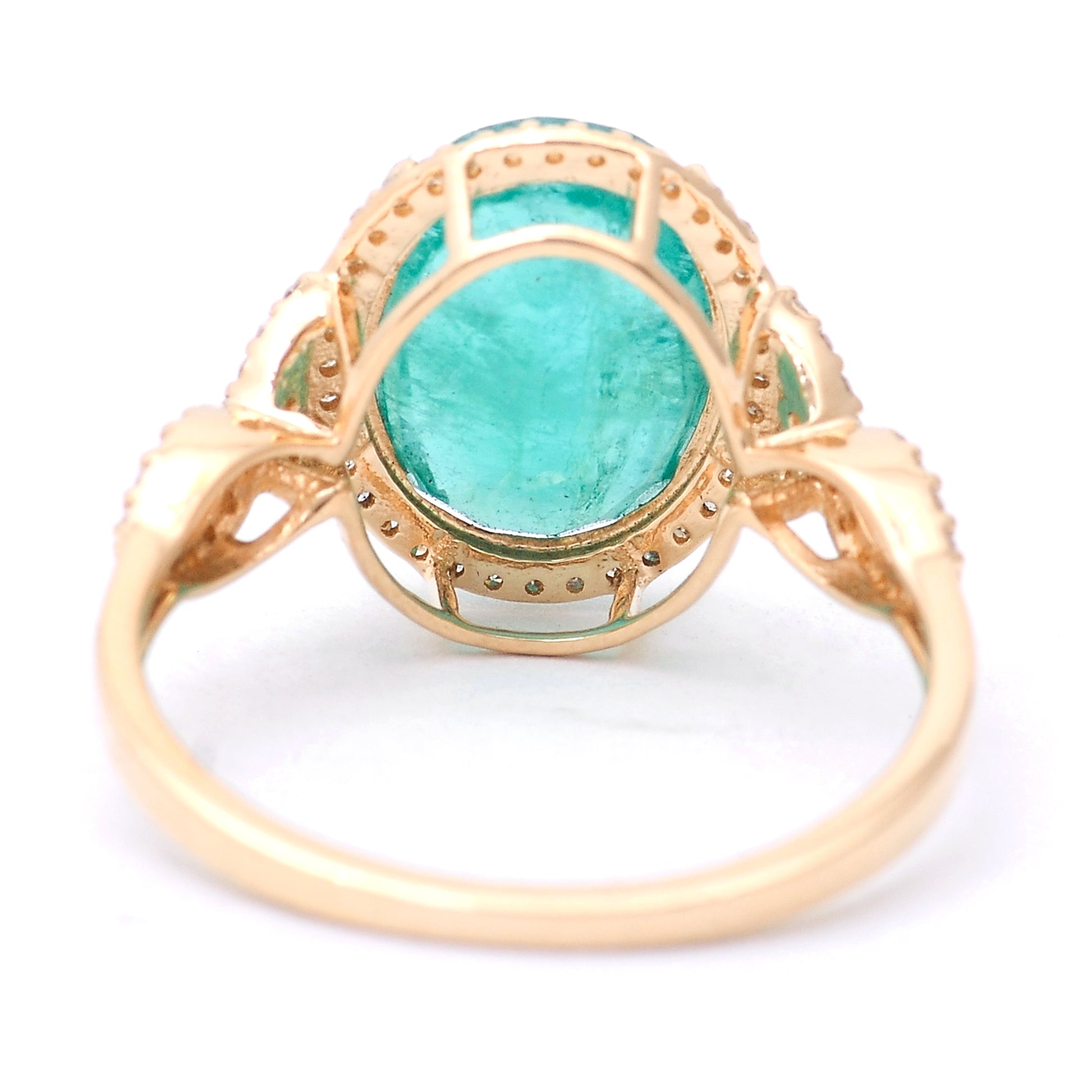 3.86 Ct Oval Mixed Cut Natural Emerald 14K Gold Ring