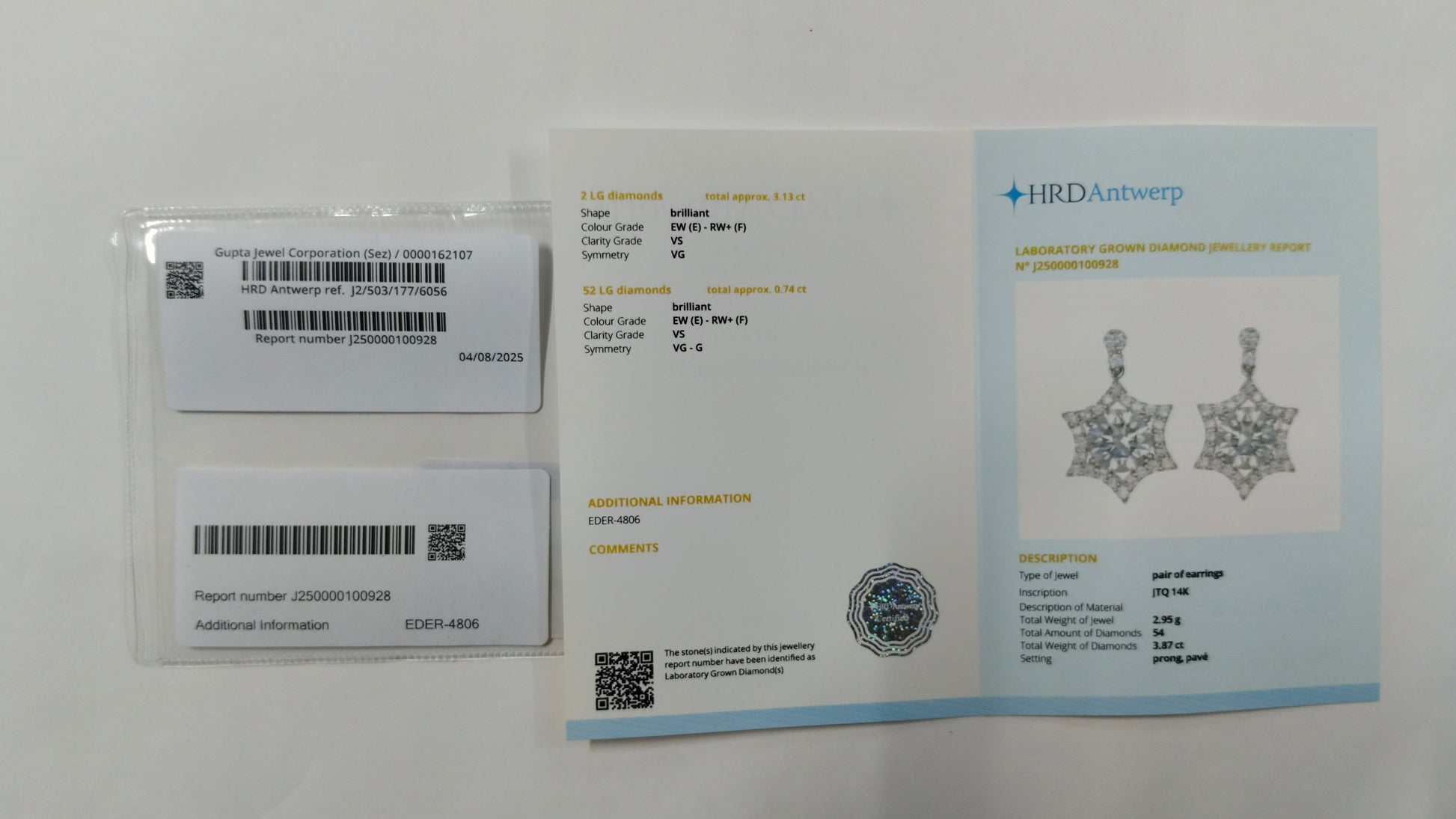 3.87-Carat Lab-Grown Diamond Round Cut Brilliant Earrings ? HRD Certified
