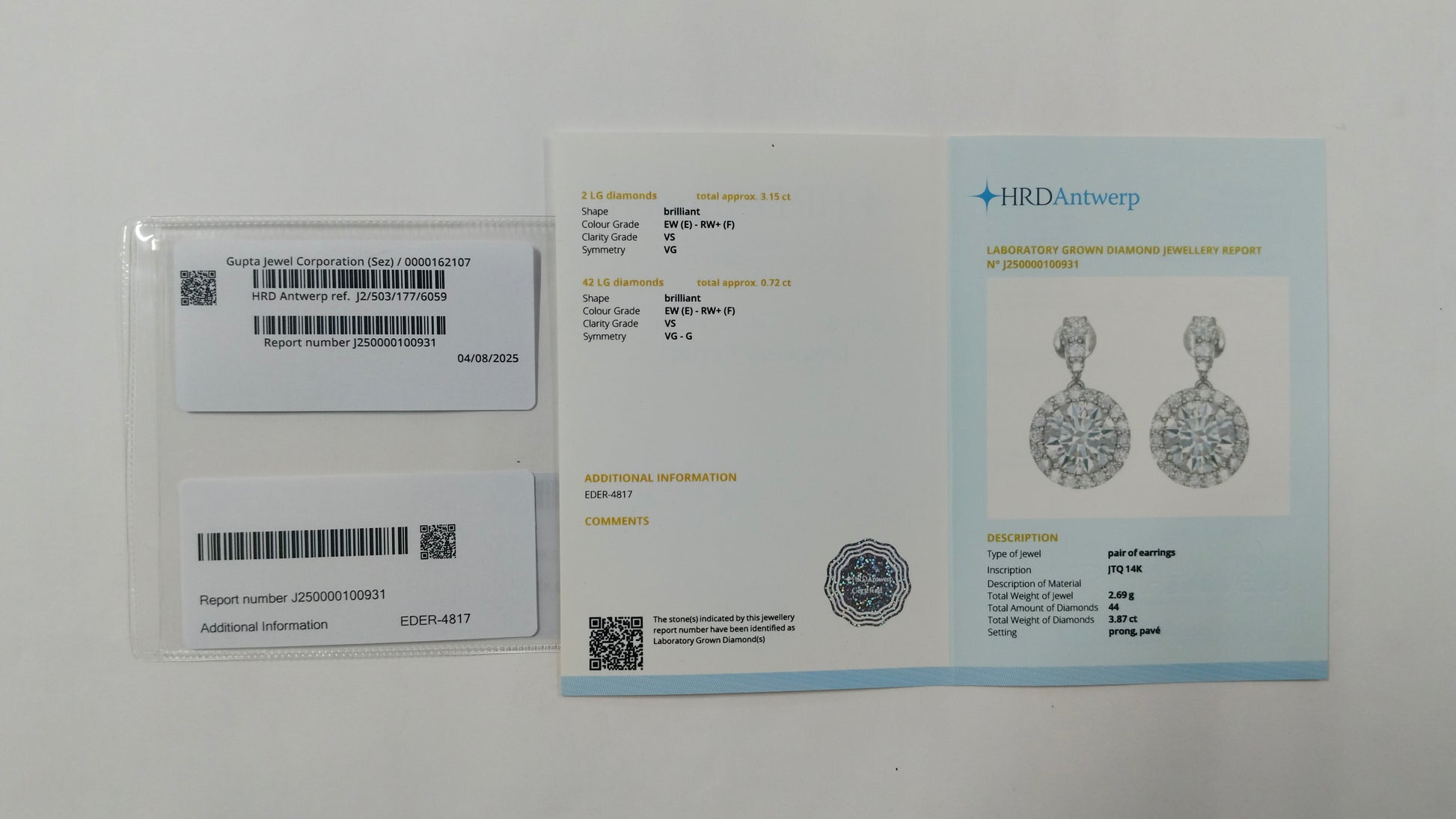 3.87-Carat Lab-Grown Diamond Round Cut Brilliant Earrings ? HRD Certified
