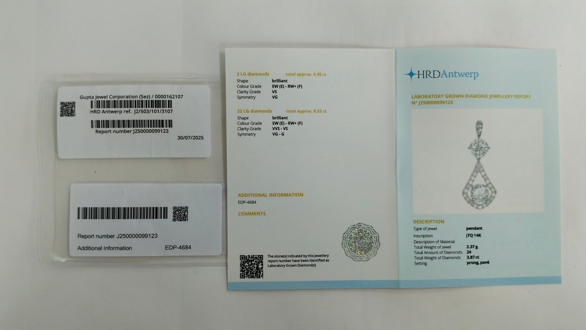 3.87 Carats Lab Grown Diamond 14K Gold Pendant