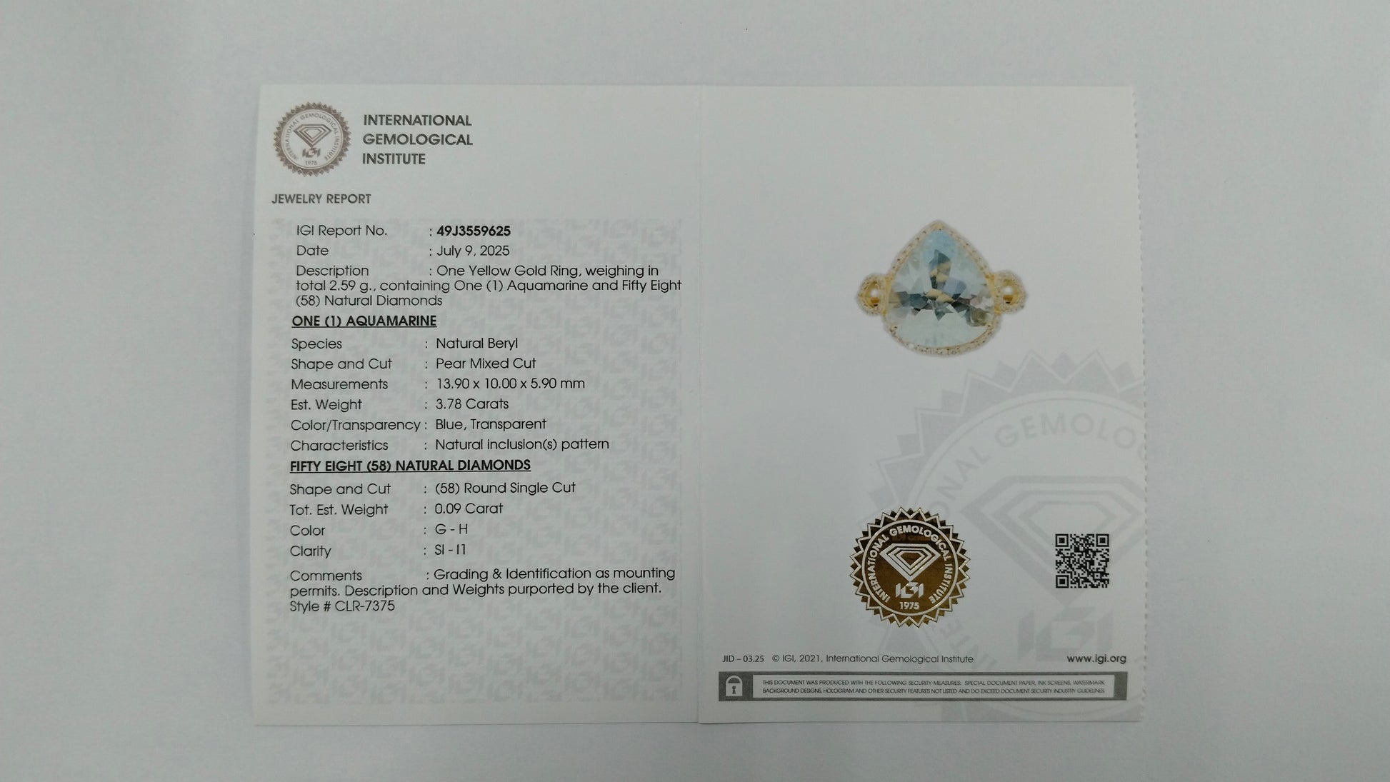 - Lab Name: International Gemological Institute (IGI)