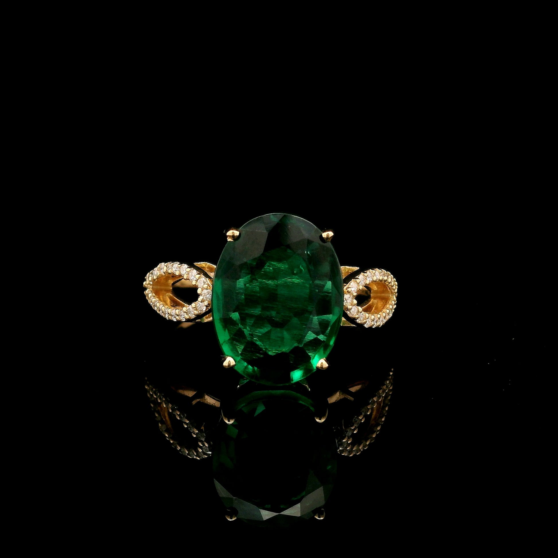 3.88 Ct Oval Mixed Cut Lab Grown Emerald 14K Gold Ring