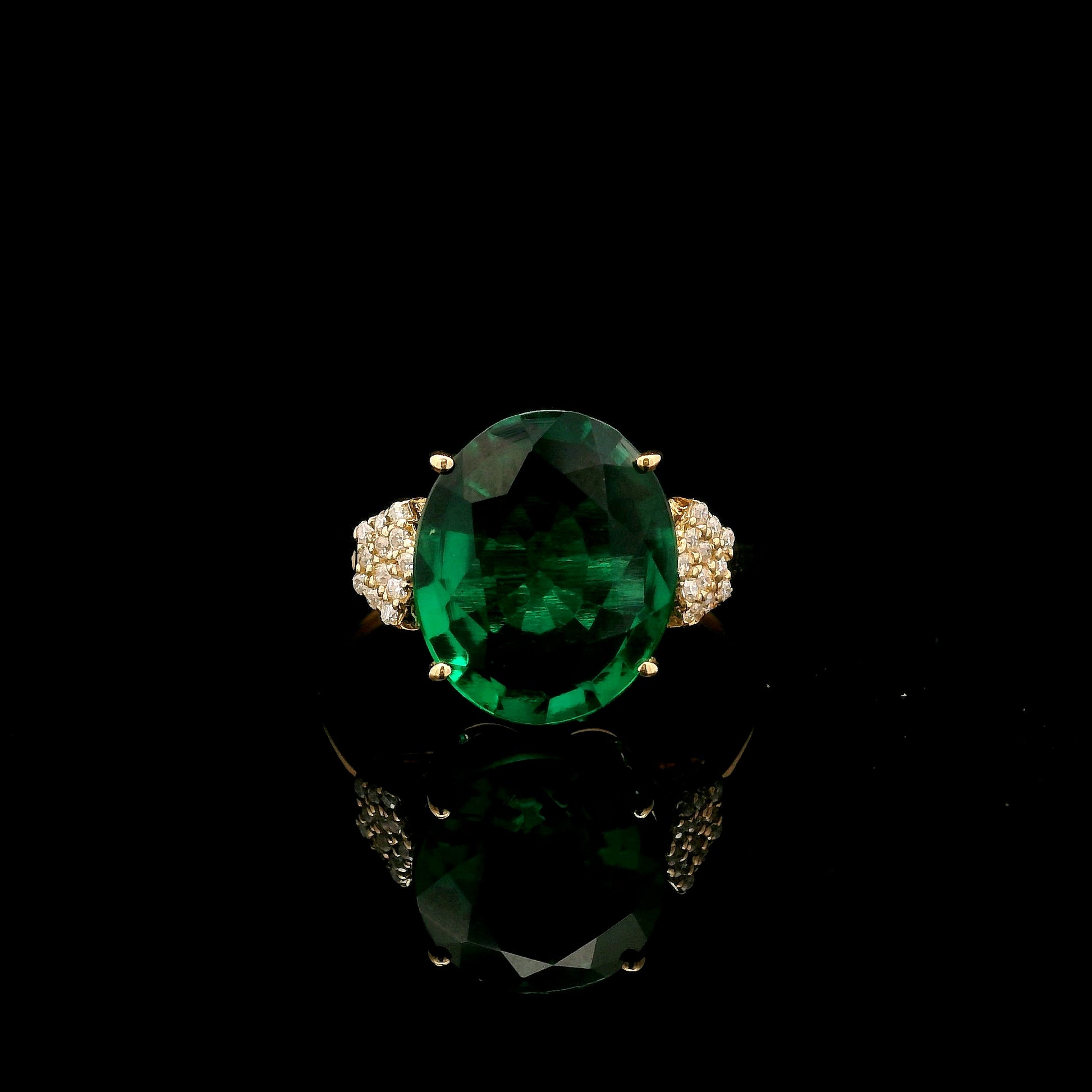 3.90 Ct Oval Mixed Cut Lab Grown Emerald 14K Gold Ring