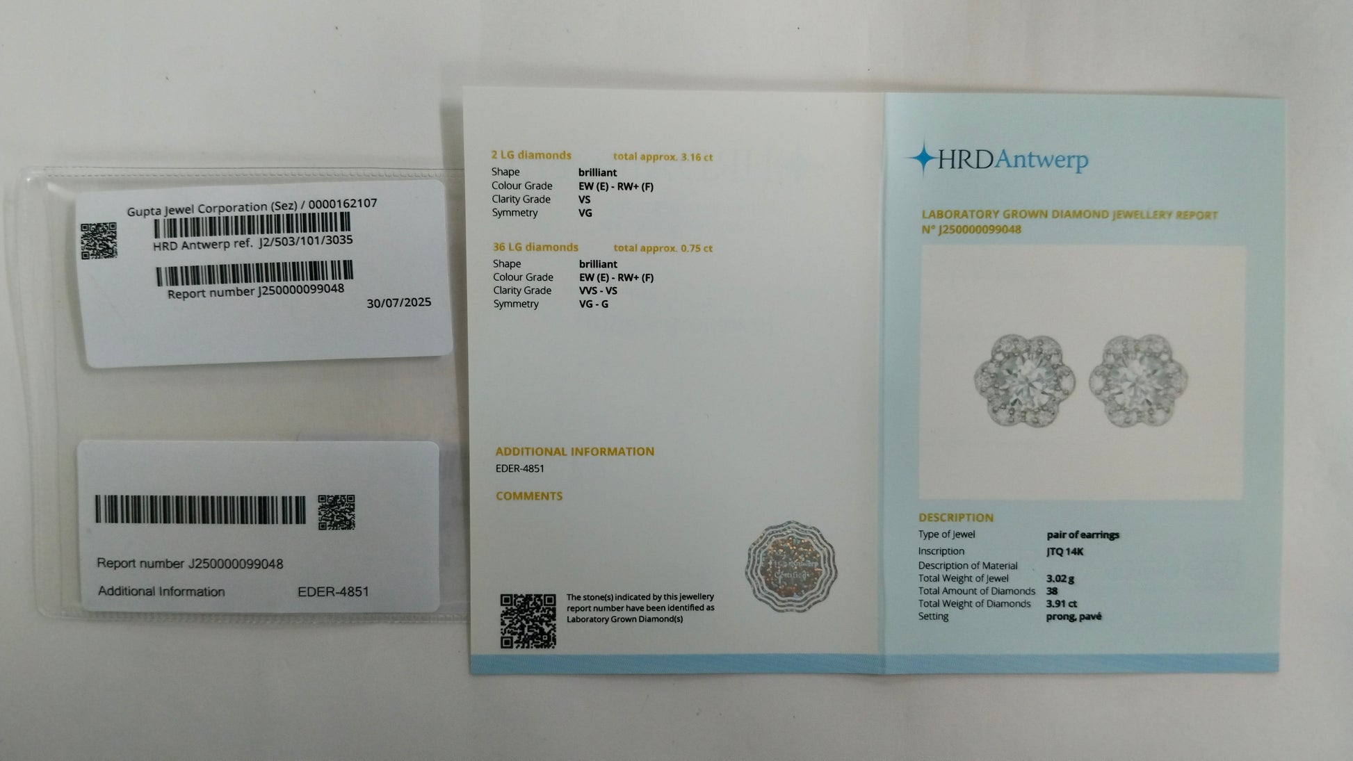 3.91-Carat Lab-Grown Diamond Round Cut Brilliant Earrings ? HRD Certified