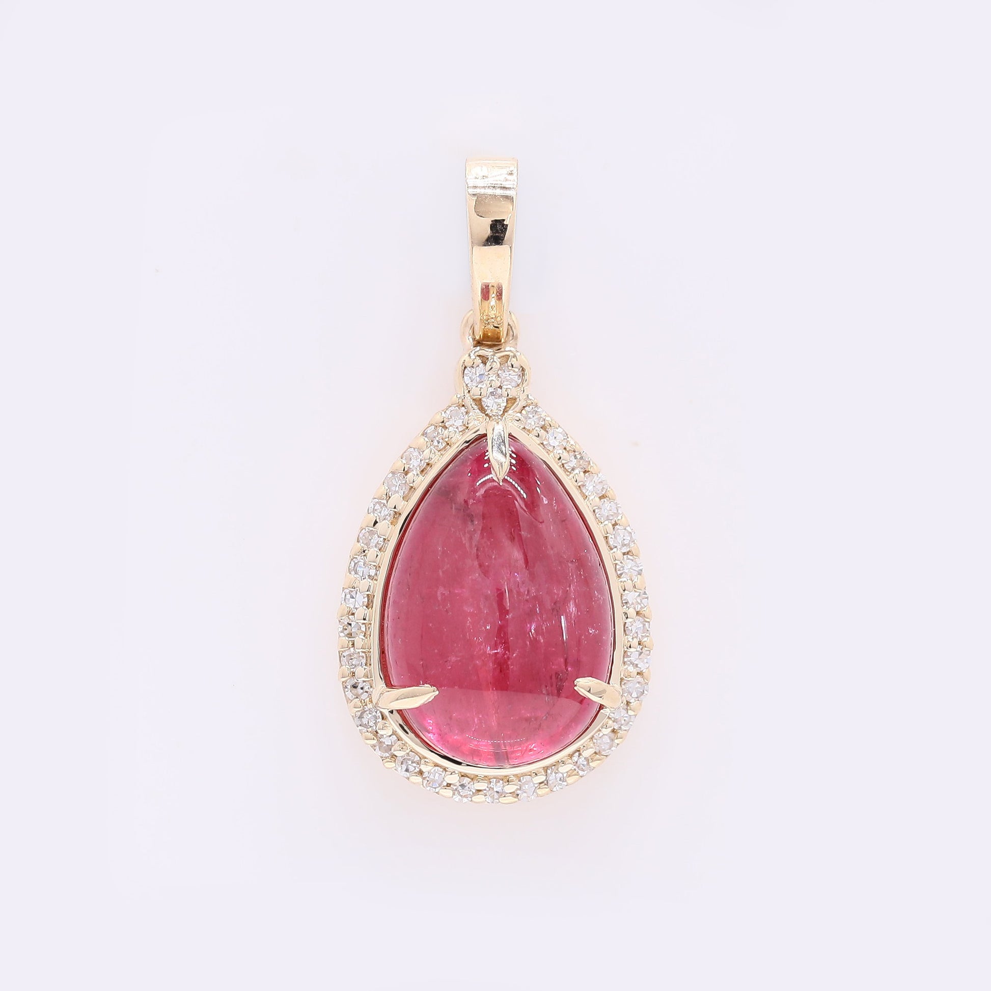 3.91 Ct Pear Cabochon Natural Tourmaline 14K Gold Pendant
