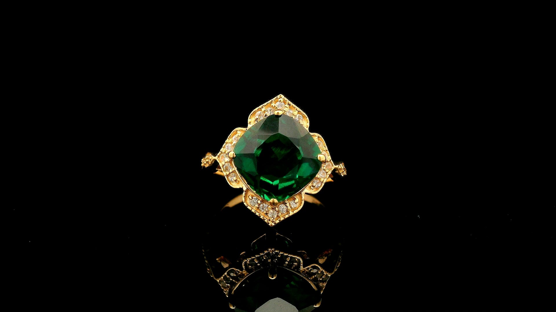3.95 Ct Cushion Lab Grown Emerald 14K Gold Ring