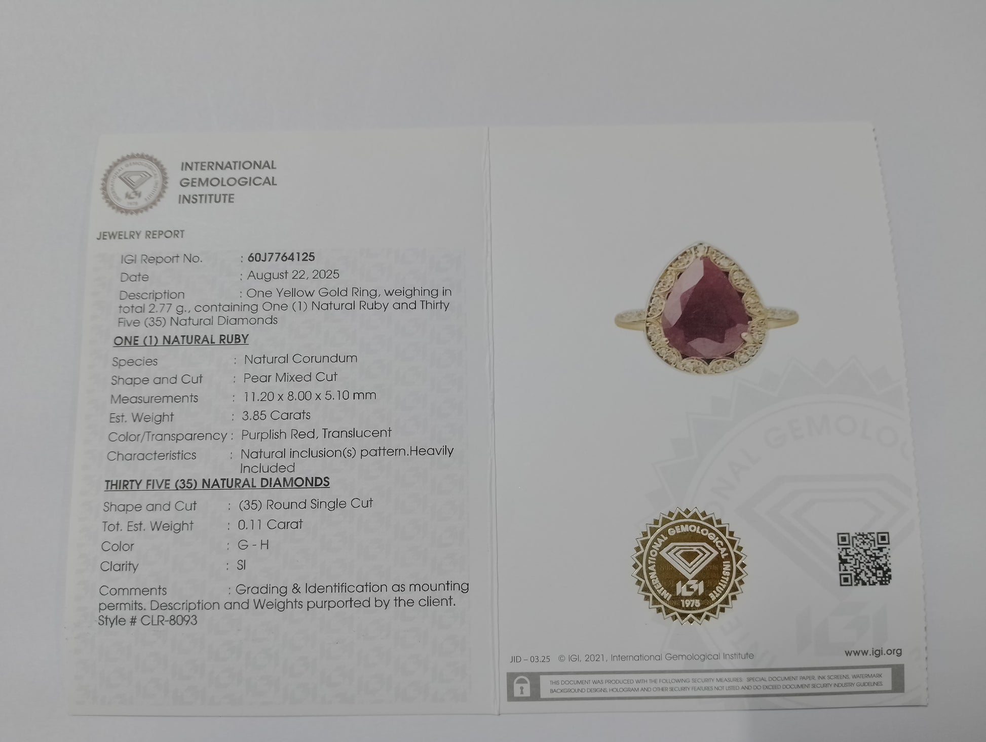 - Lab Name: International Gemological Institute (IGI)