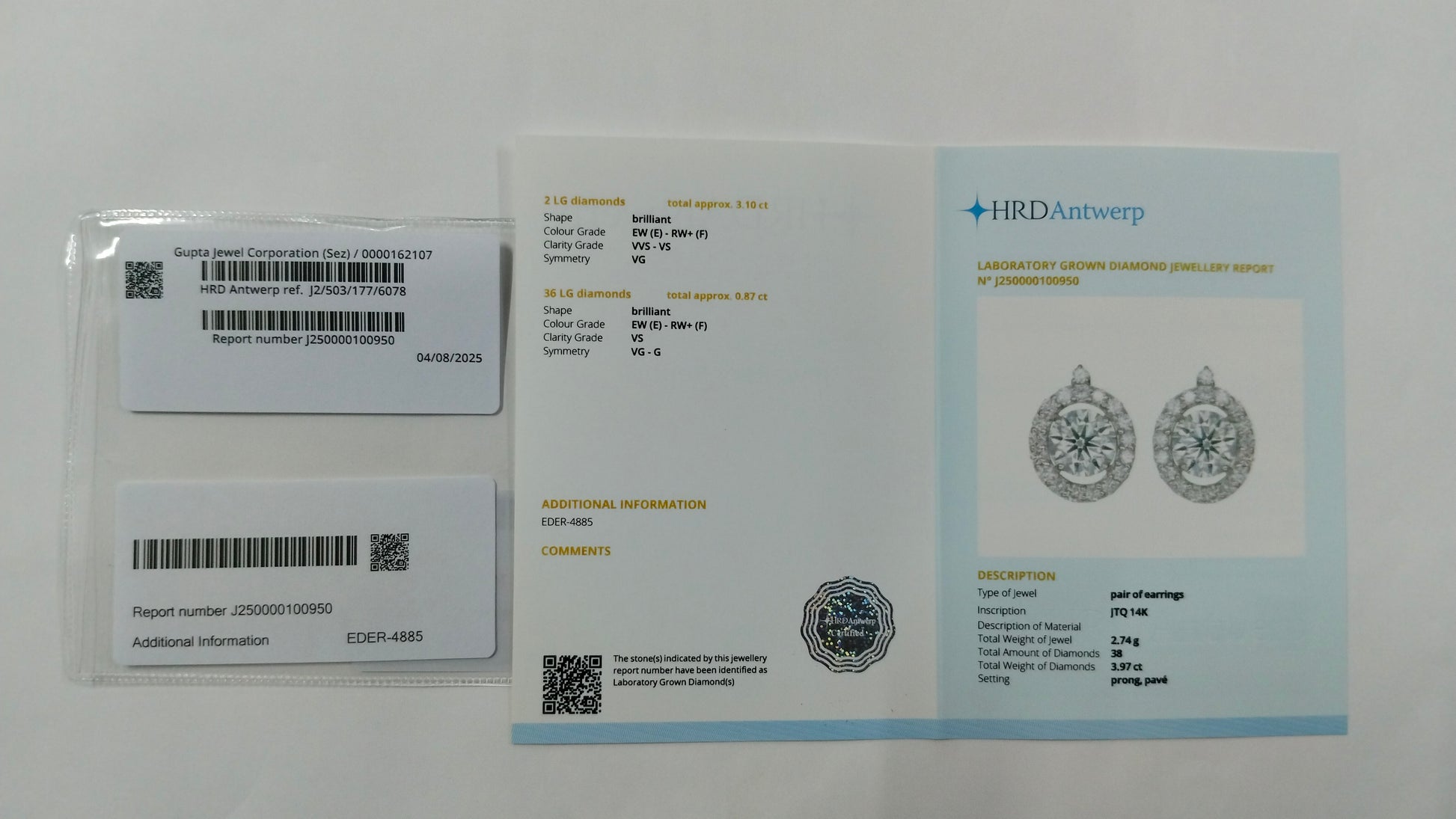 3.97-Carat Lab-Grown Diamond Round Cut Brilliant Earrings ? HRD Certified