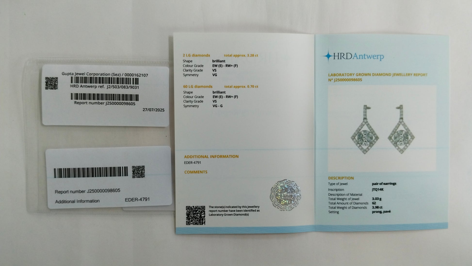 3.98 Carats Lab Grown Diamond 14K Gold Earrings