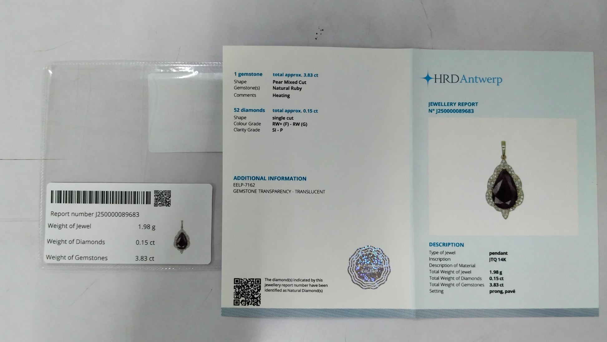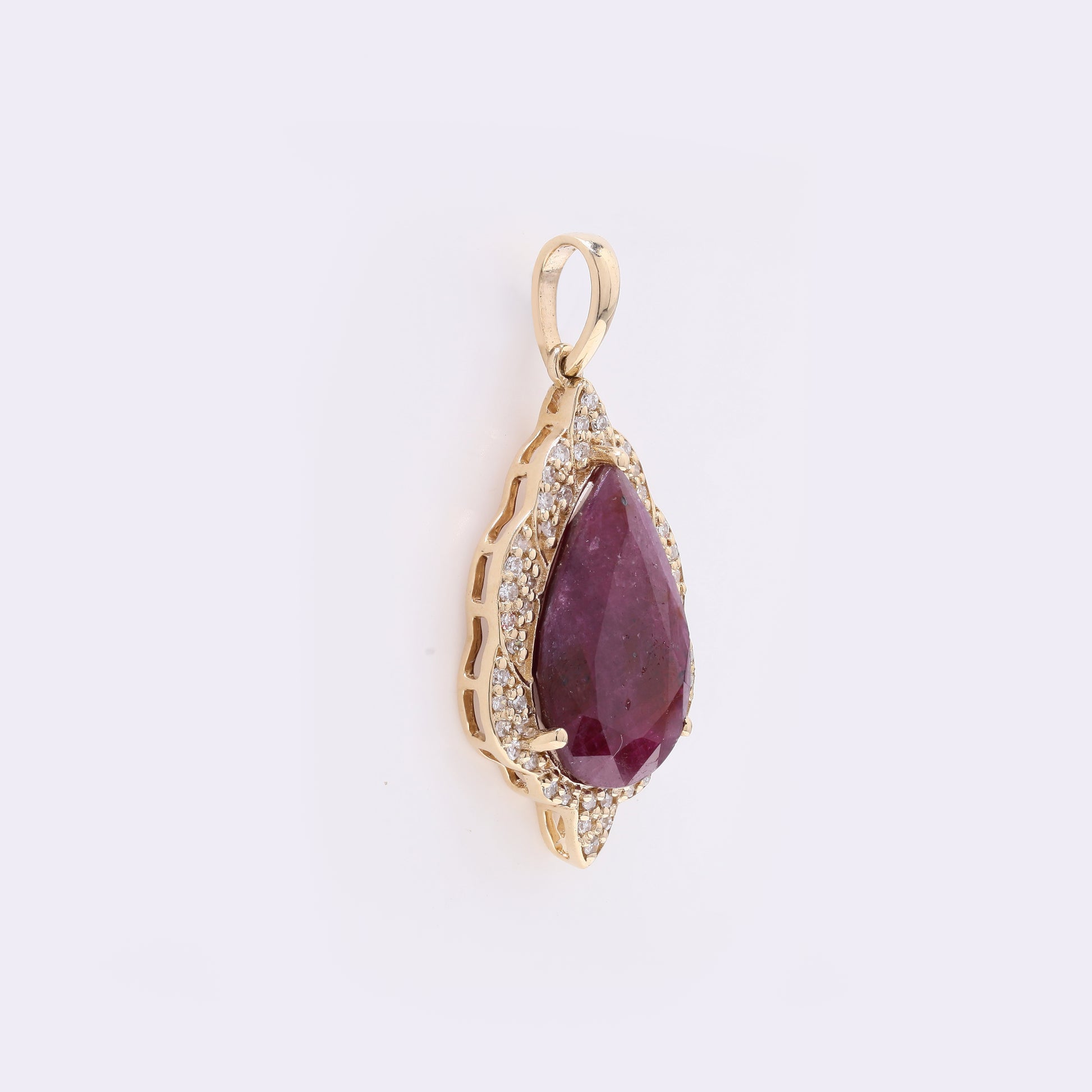 3.98 Ct Pear Mixed Cut Natural Ruby 14K Gold Pendant