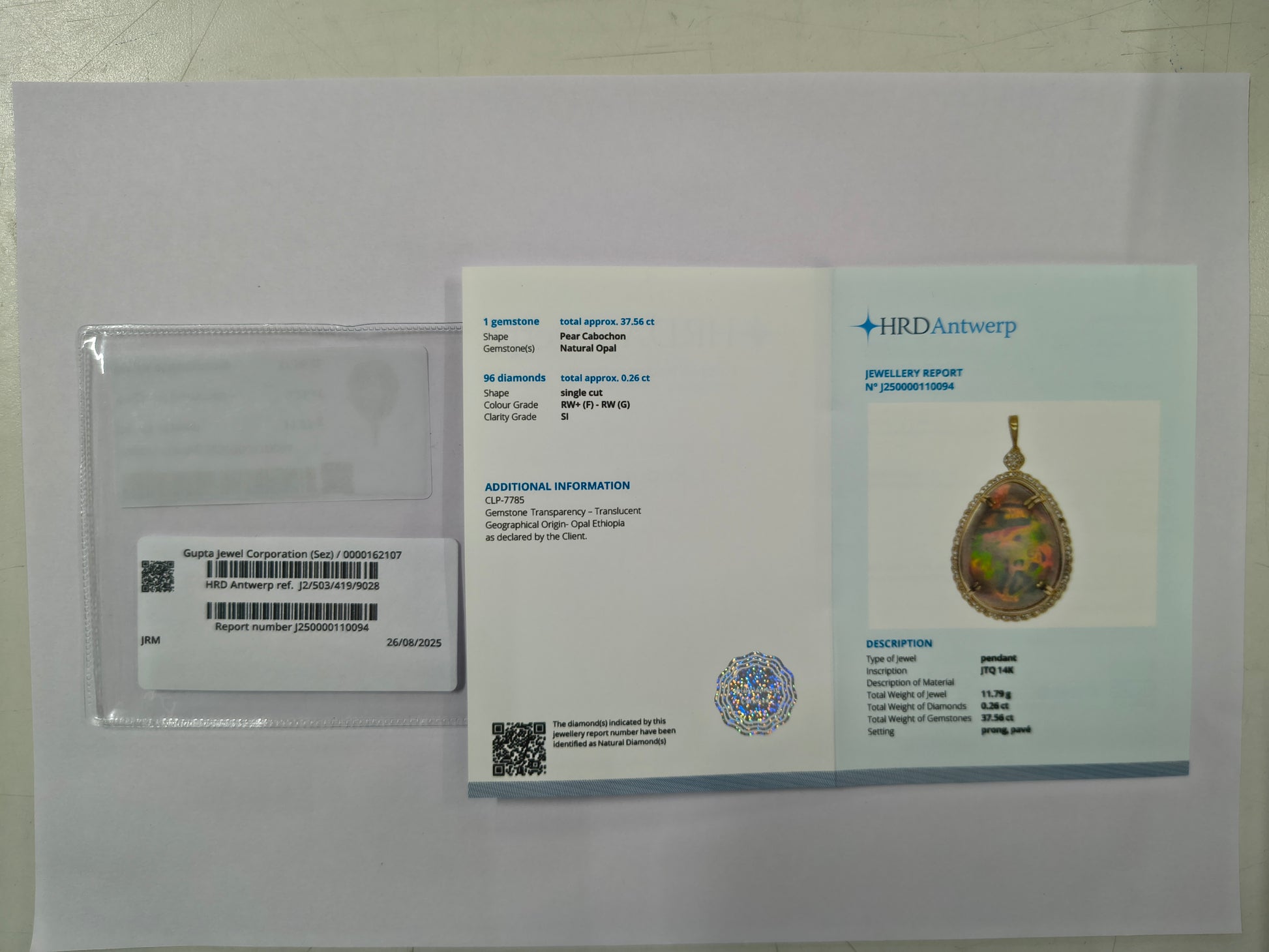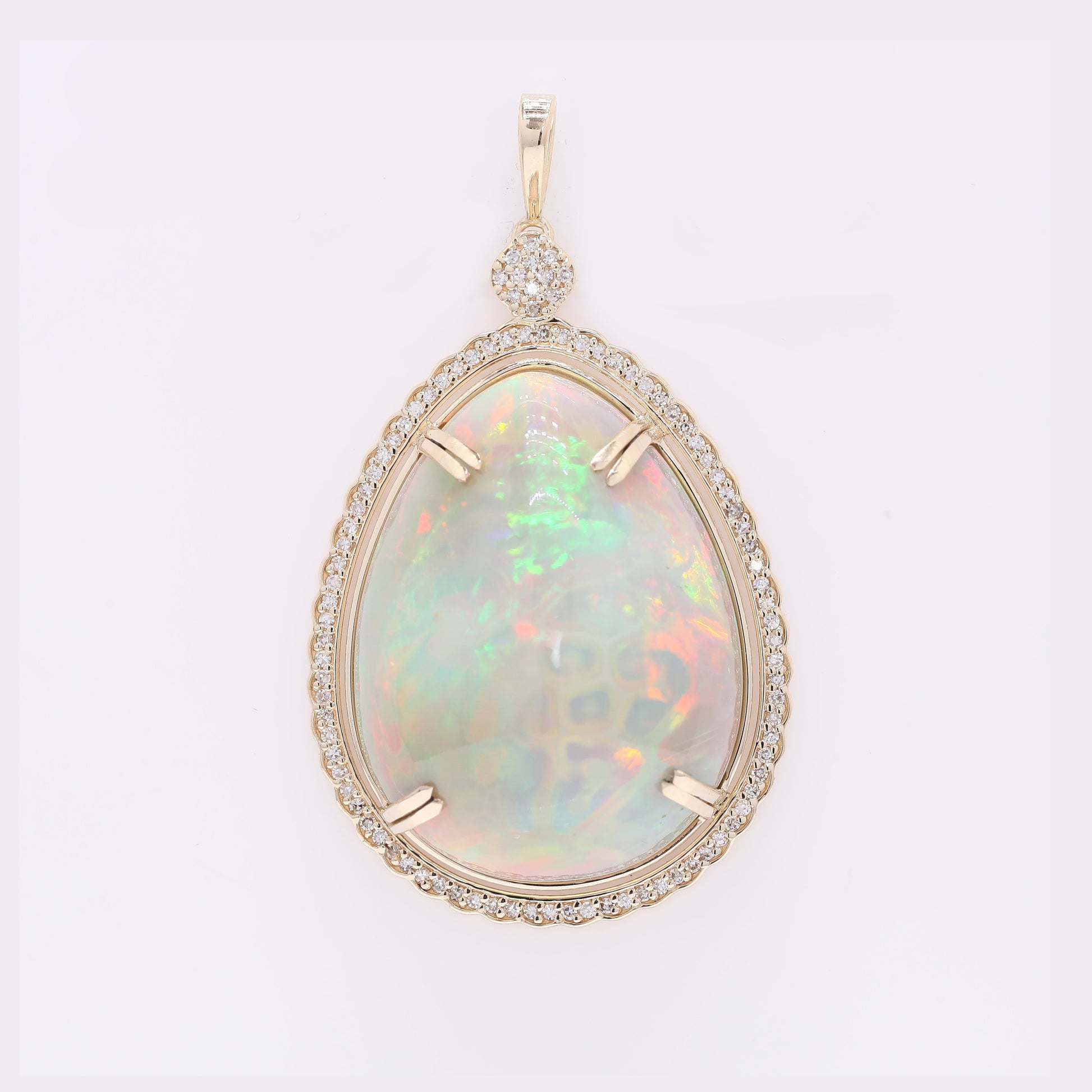 37.82 Total Carat Natural Opal 14K Gold Pendant