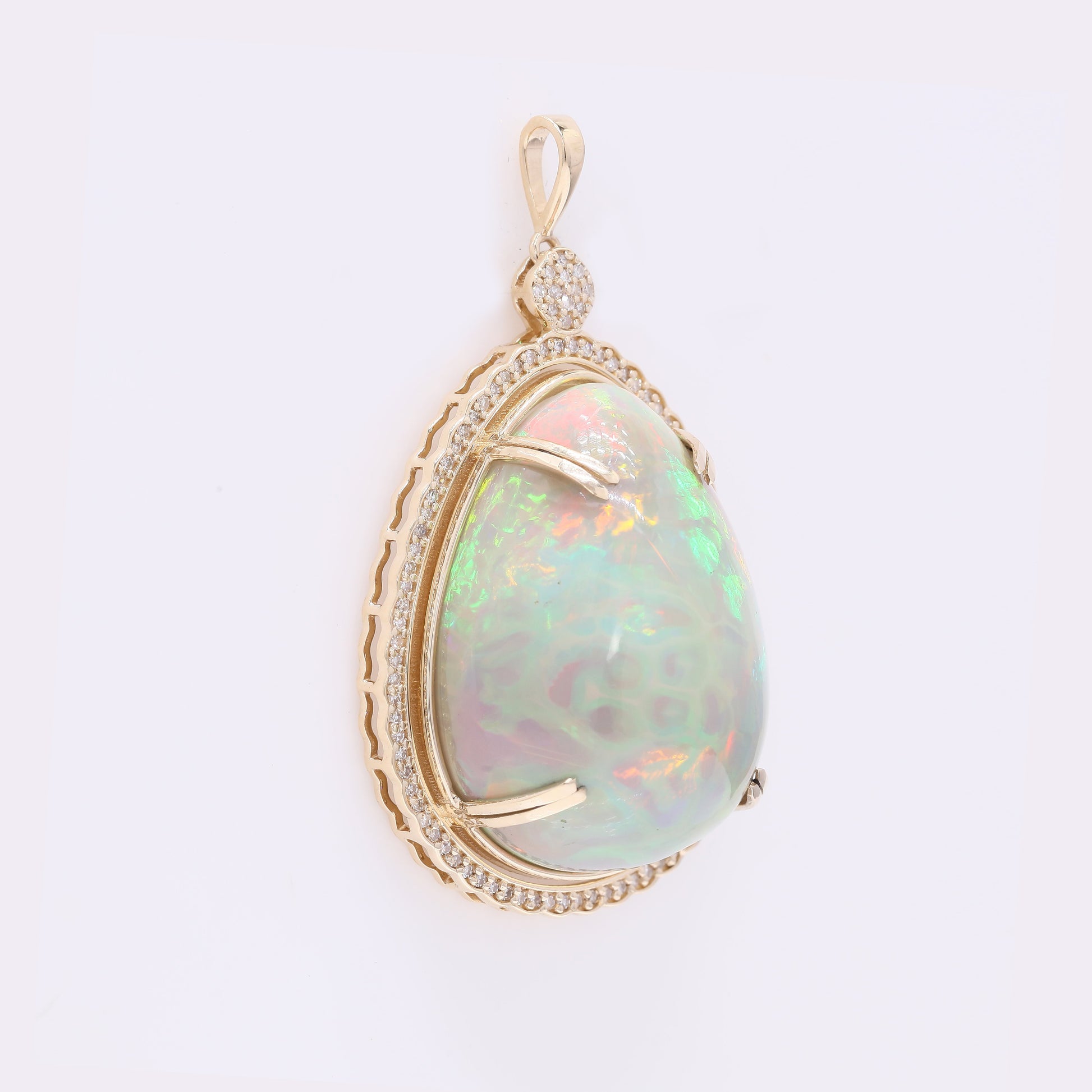 37.82 Ct Pear Cabochon Natural Opal 14K Gold Pendant