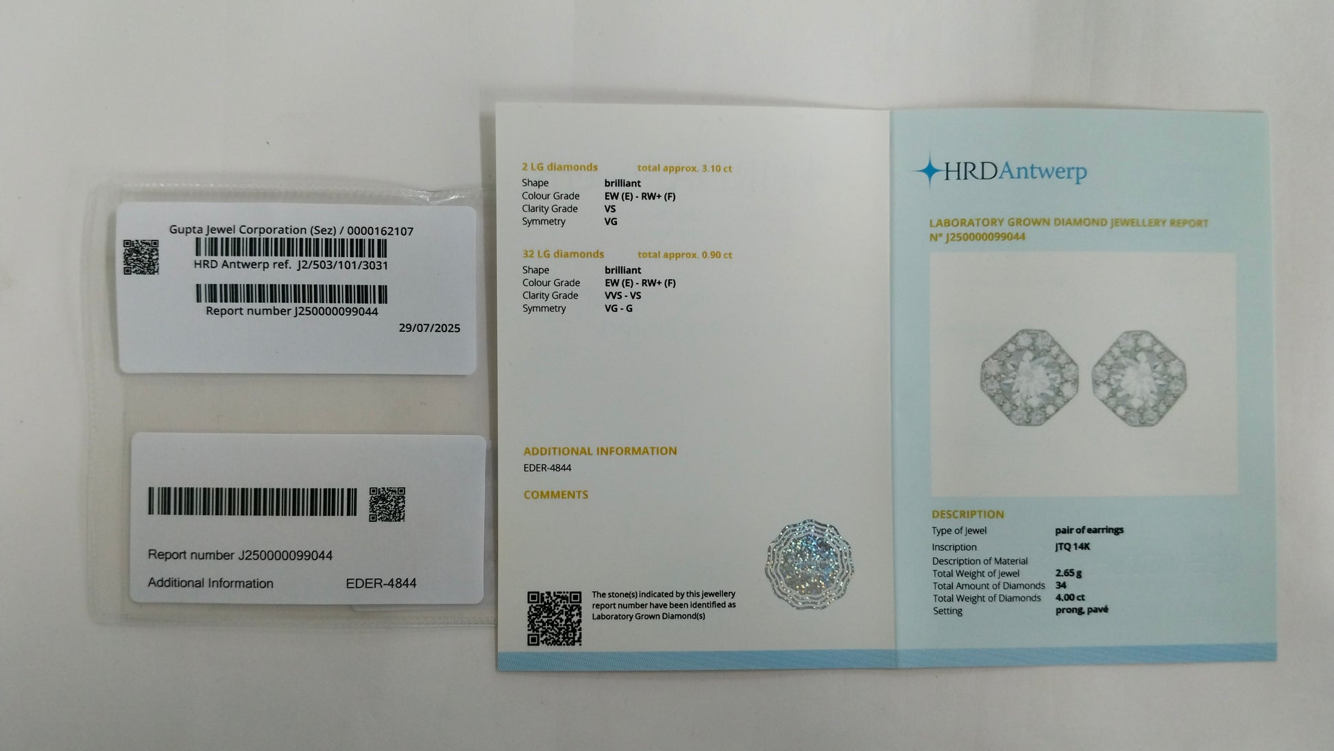 4.00 Carats Lab Grown Diamond 14K Gold Earrings