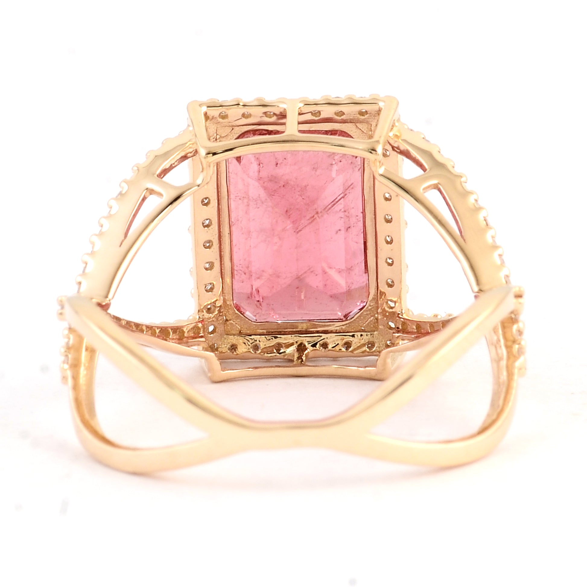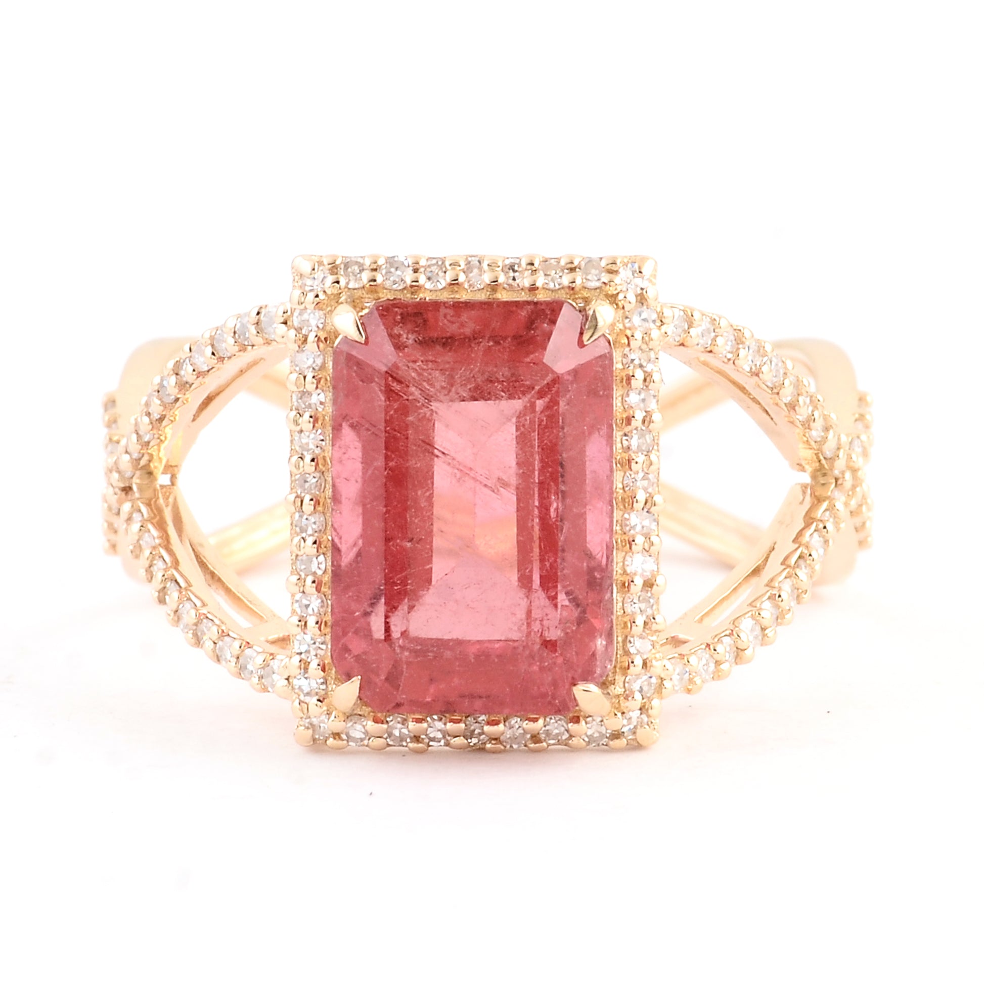 4.02 Ct Emerald Cut Natural Tourmaline 14K Gold Ring