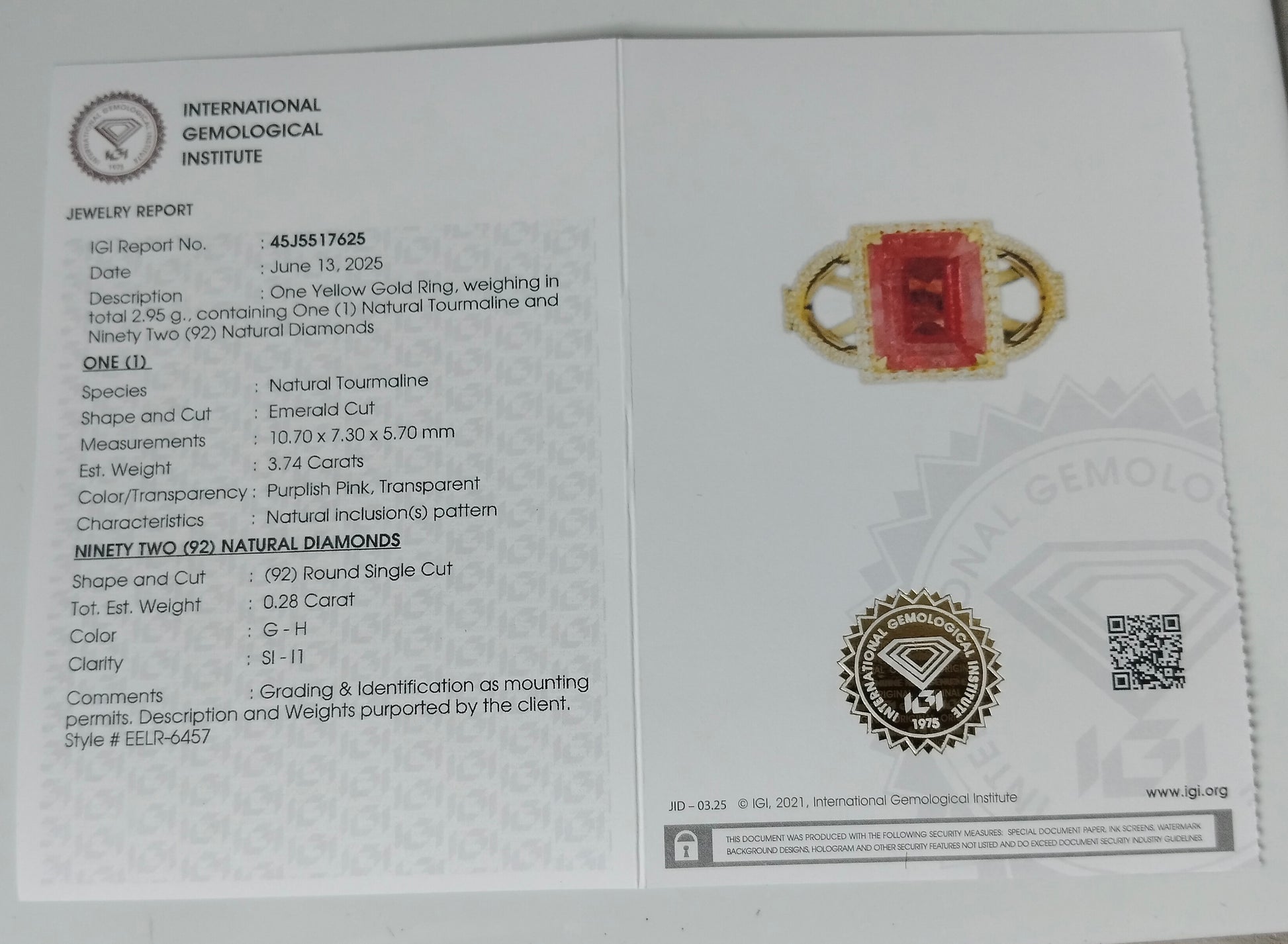 4.02 Total Carat Natural Tourmaline 14K Gold Ring