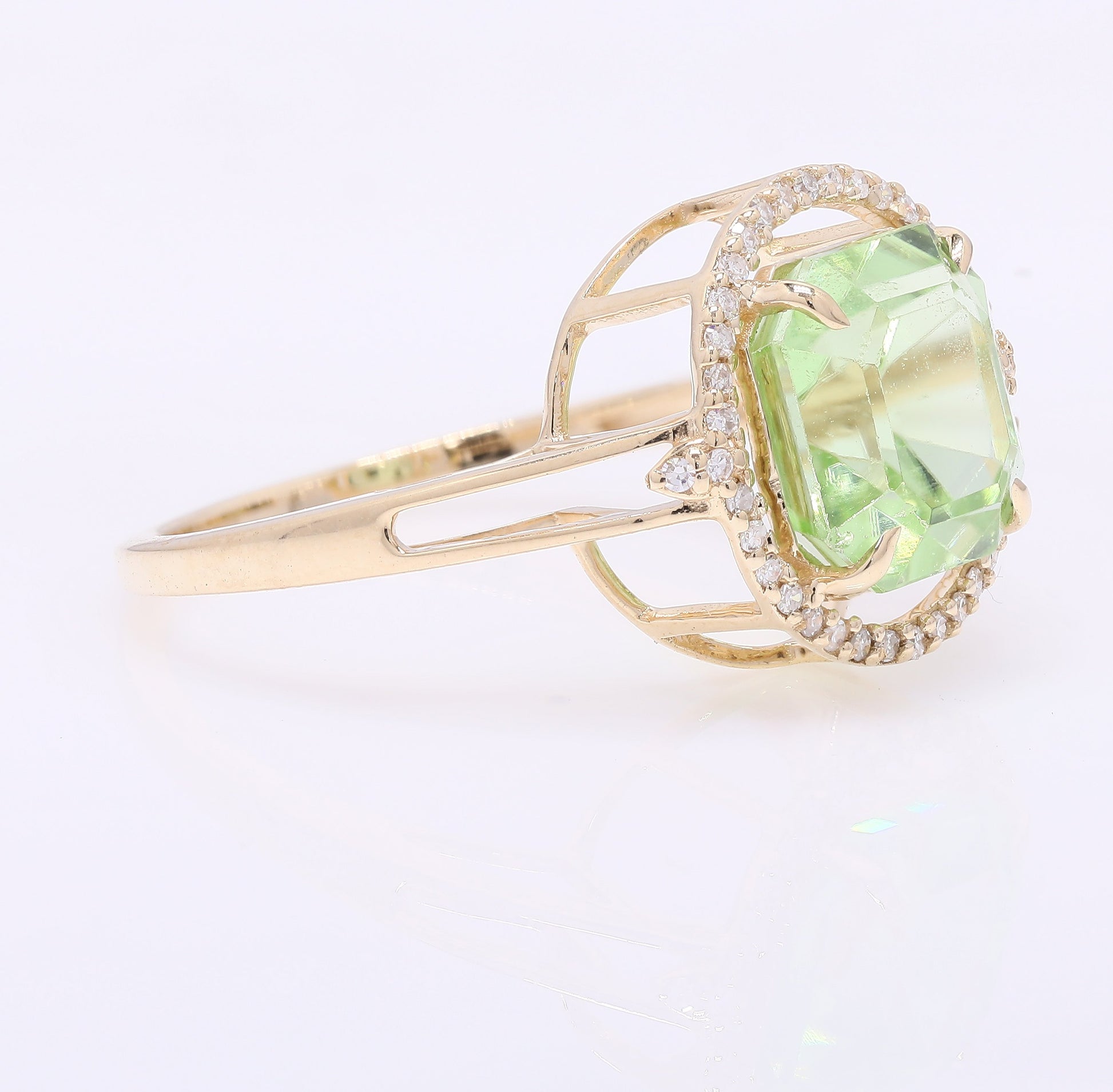 4.02 Ct Octagon Step Cut Natural Peridot 14K Gold Ring
