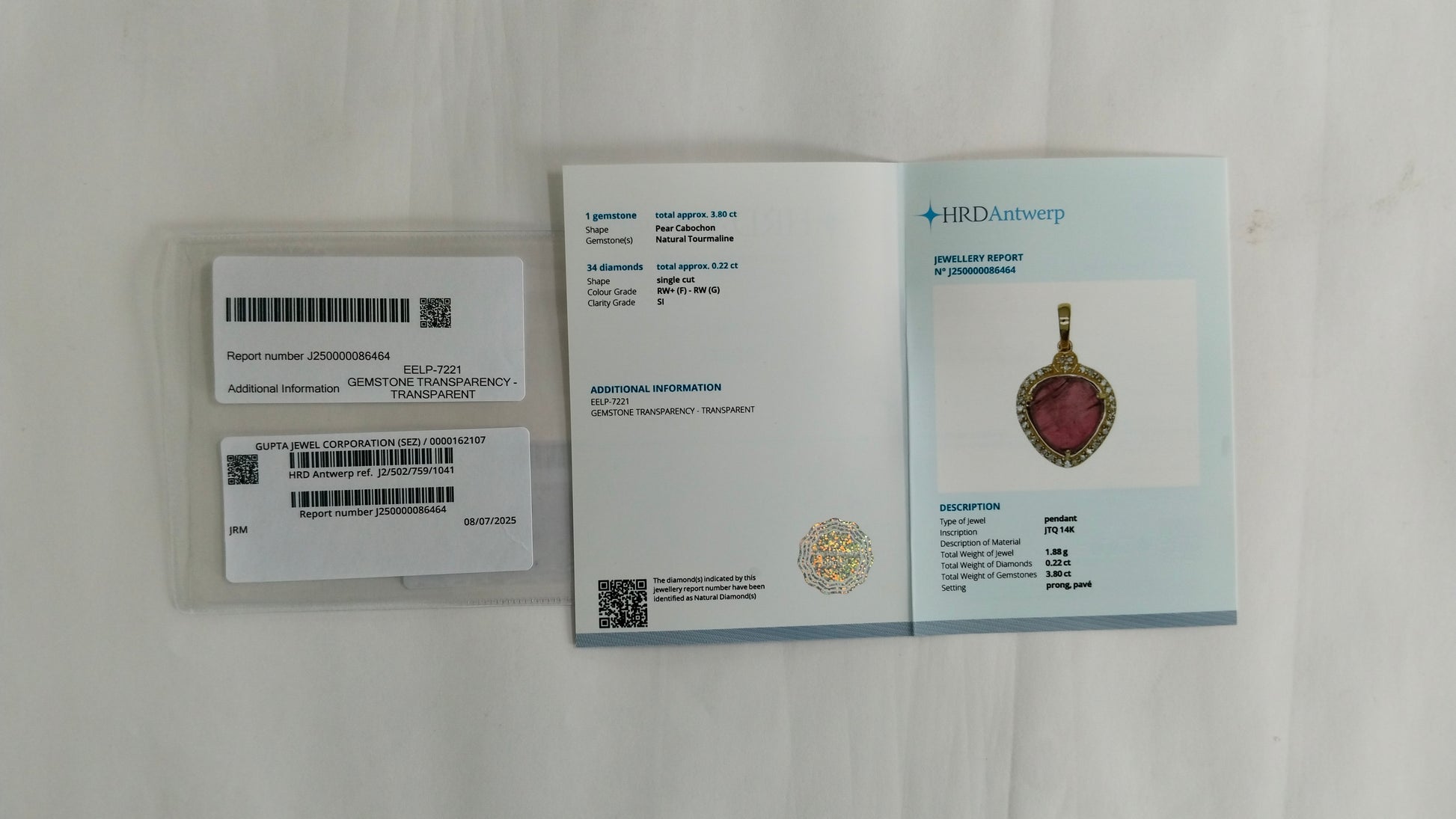 4.02 Total Carat Natural Tourmaline 14K Gold Pendant
