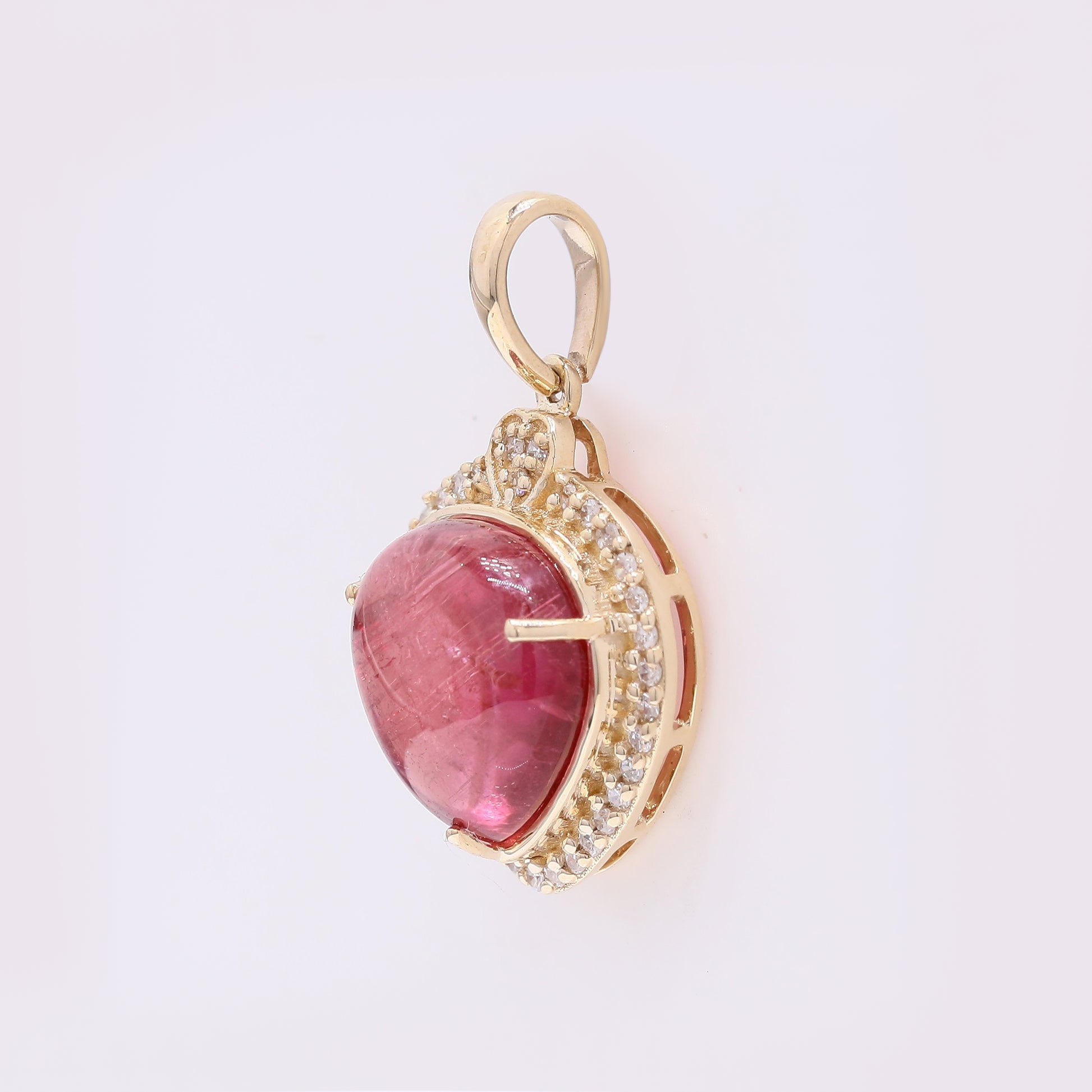 4.02 Ct Pear Cabochon Natural Tourmaline 14K Gold Pendant
