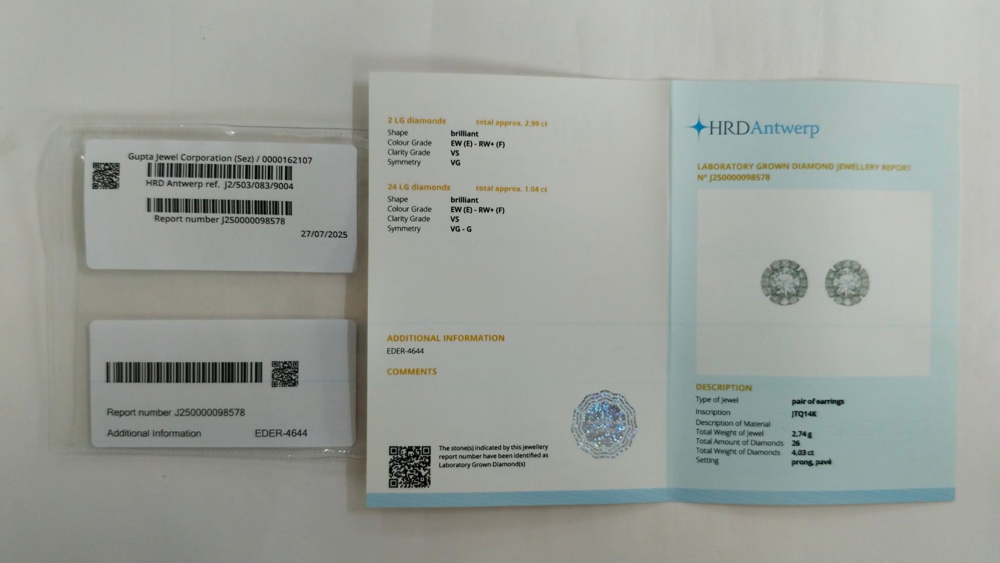 4.03 Carats Lab Grown Diamond 14K Gold Earrings