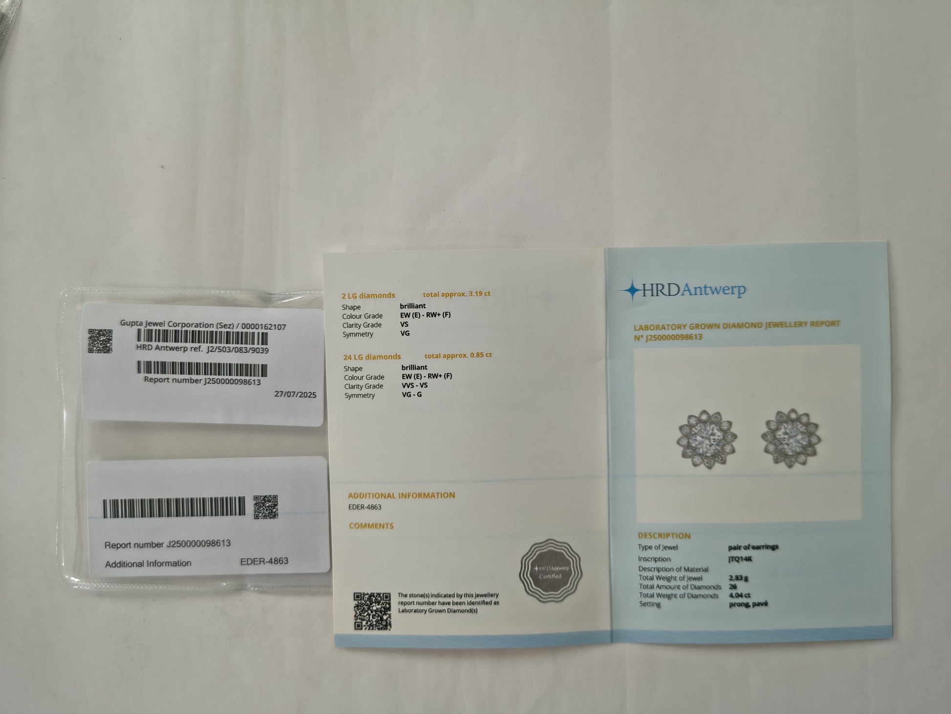 4.04-Carat Lab-Grown Diamond Round Cut Brilliant Earrings ? HRD Certified