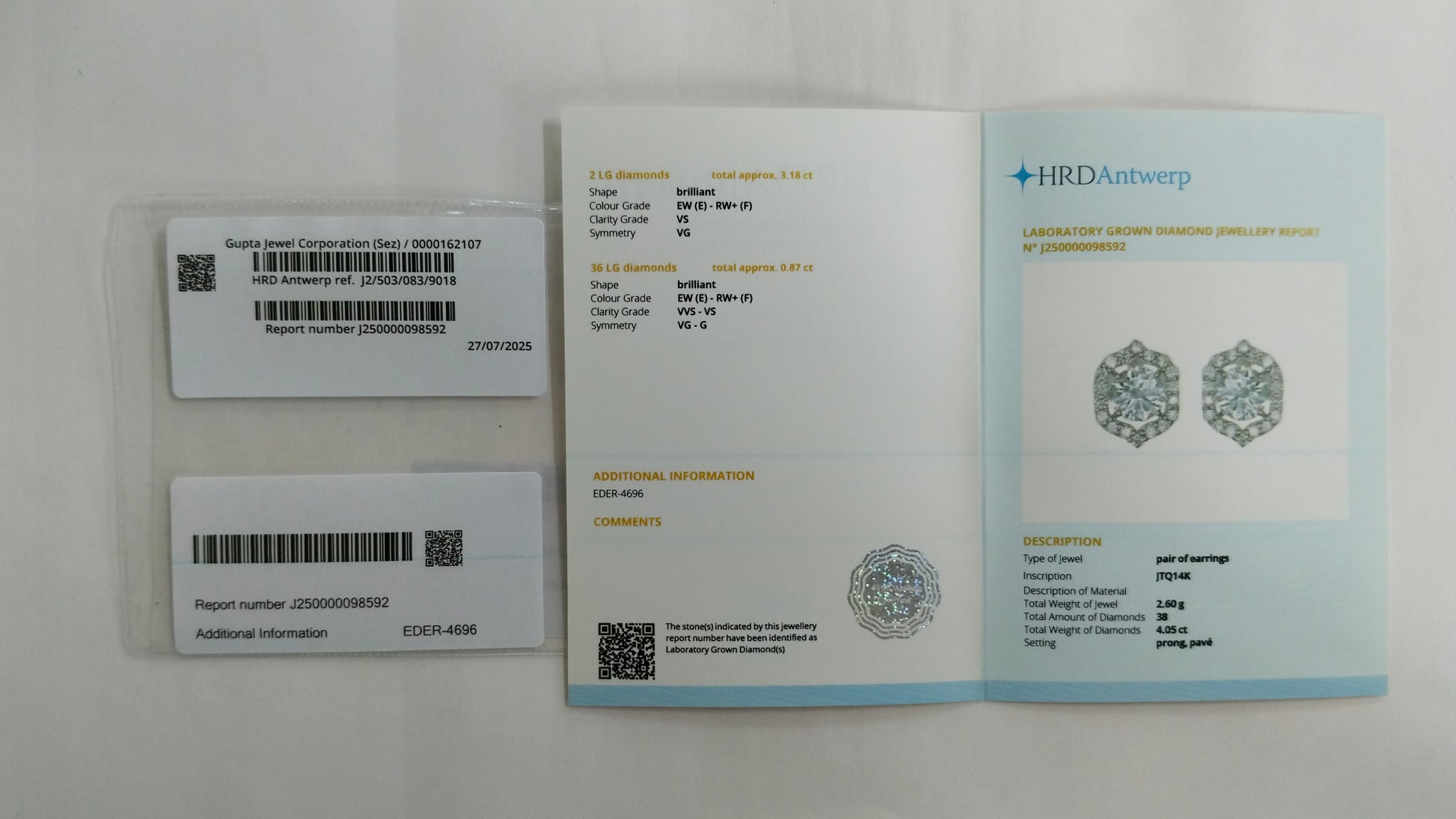 4.05-Carat Lab-Grown Diamond Round Brilliant Earrings - HRD Certified