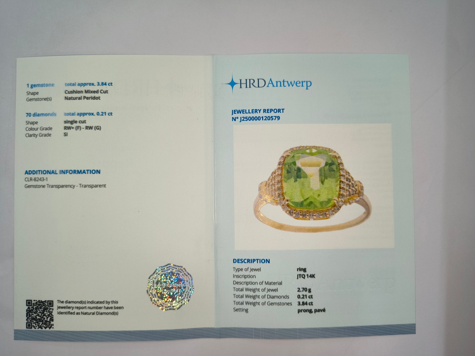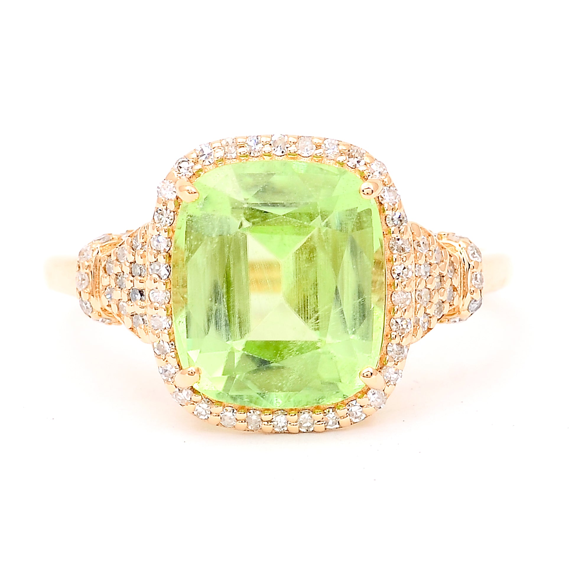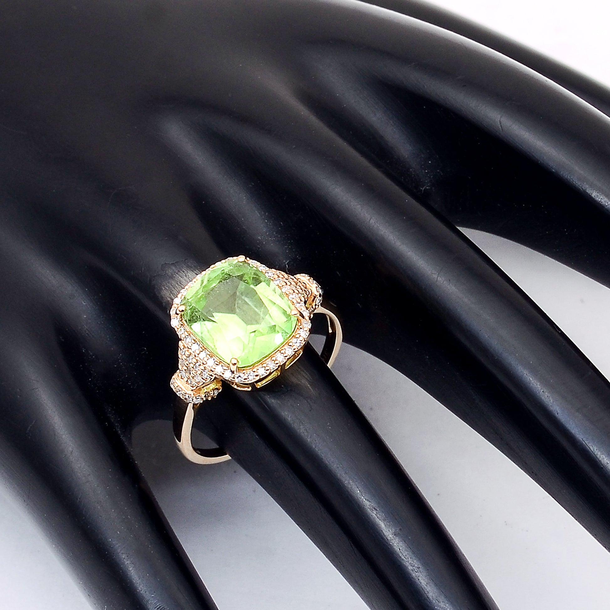 4.05 Ct Cushion Natural Eridot 14K Gold Ring