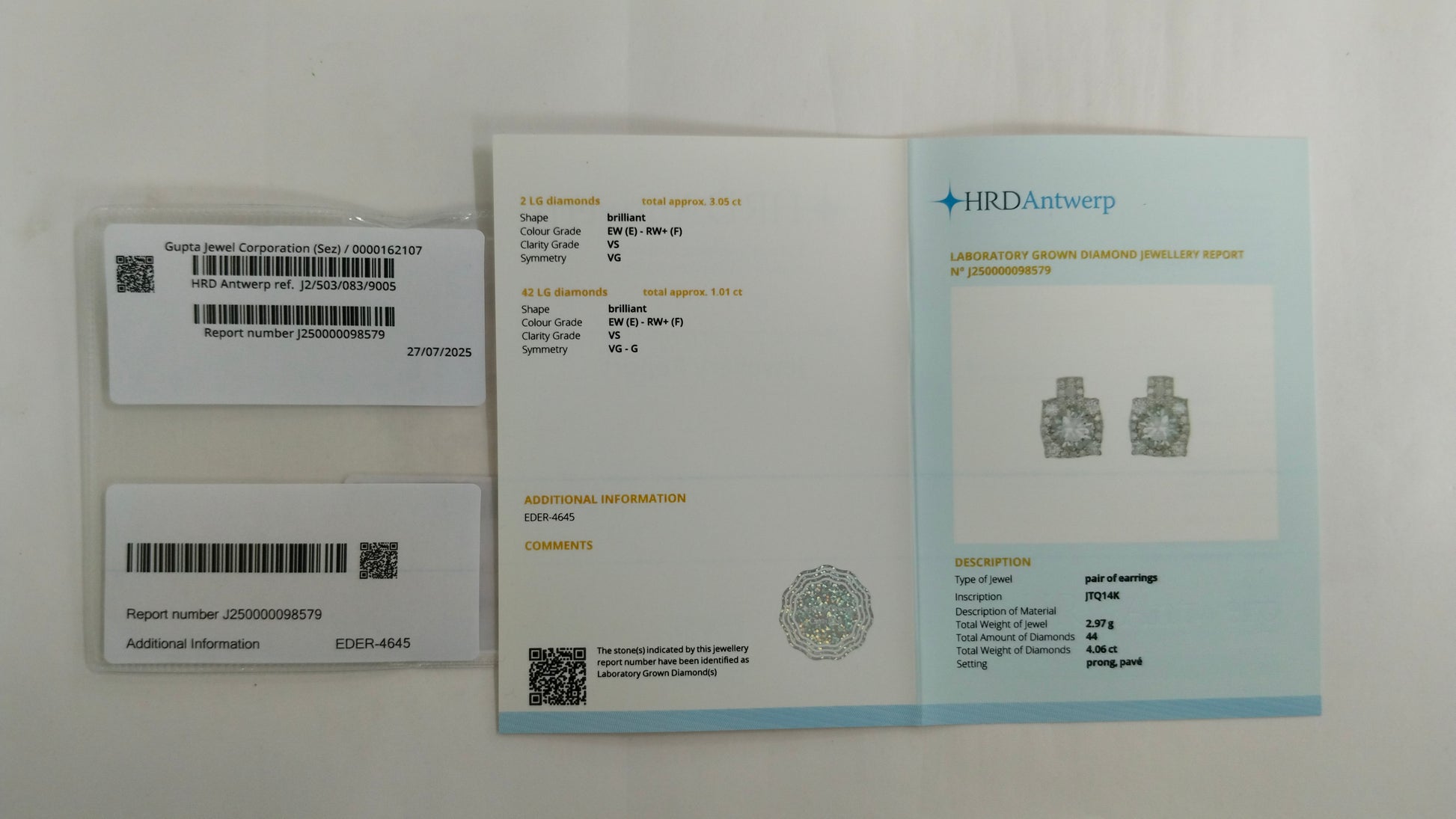4.06-Carat Lab-Grown Diamond Round Brilliant Earrings - HRD Certified