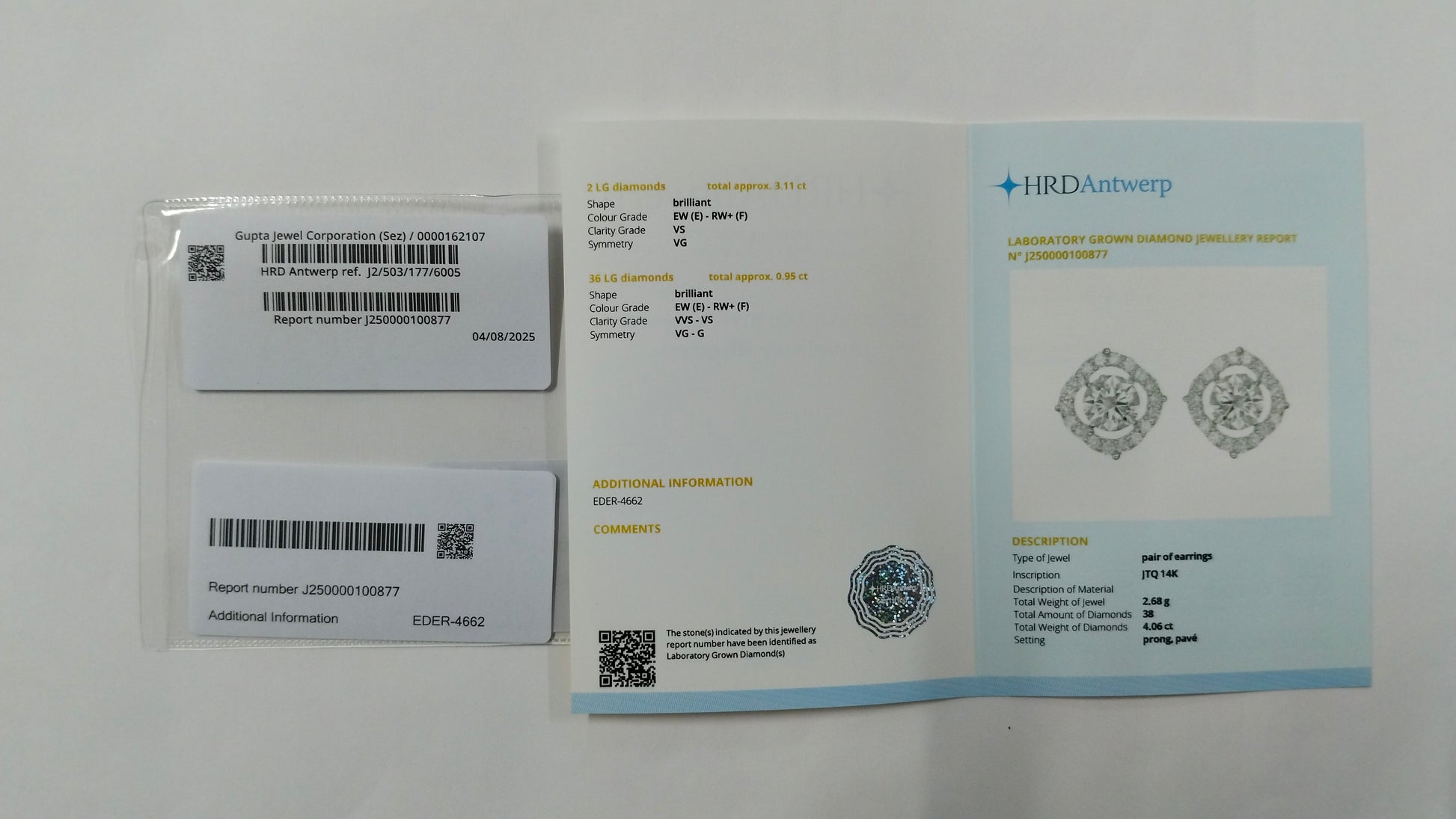4.06-Carat Lab-Grown Diamond Round Cut Brilliant Earrings ? HRD Certified