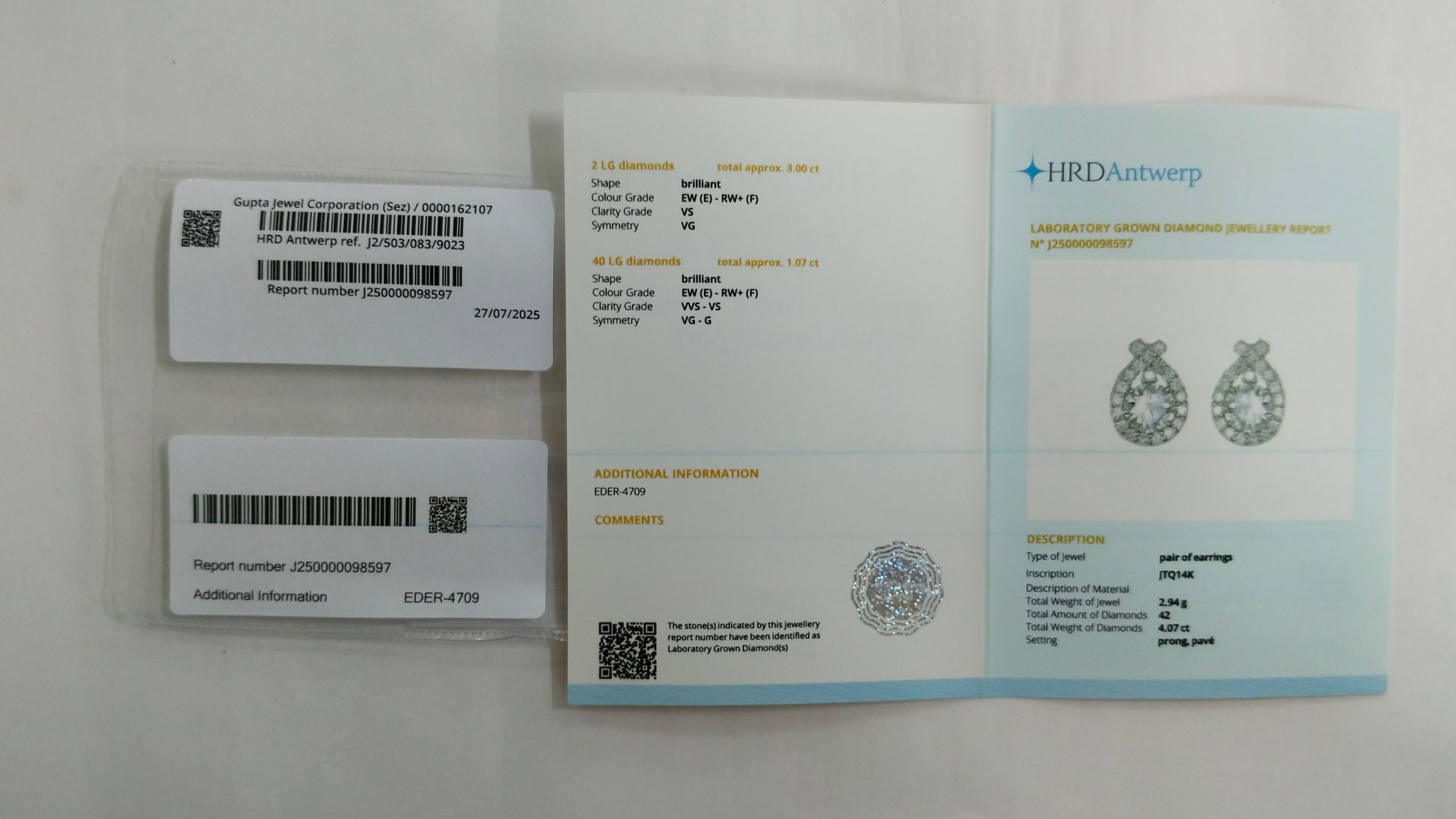 4.07 Carats Lab Grown Diamond 14K Gold Earrings