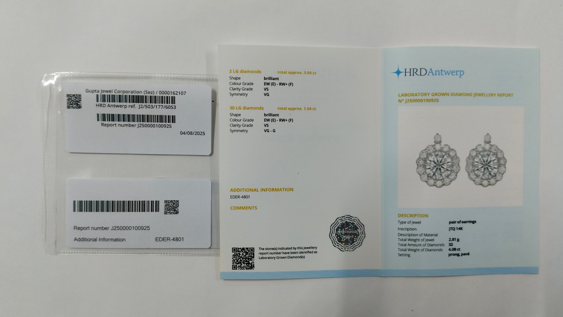 4.08-Carat Lab-Grown Diamond Round Cut Brilliant Earrings ? HRD Certified