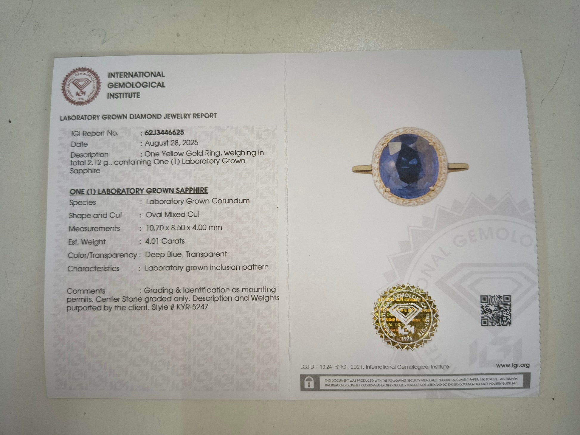 - Lab Name: International Gemological Institute (IGI)