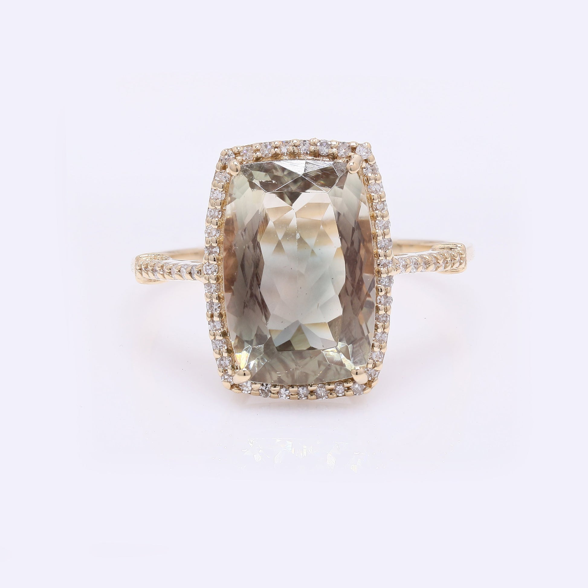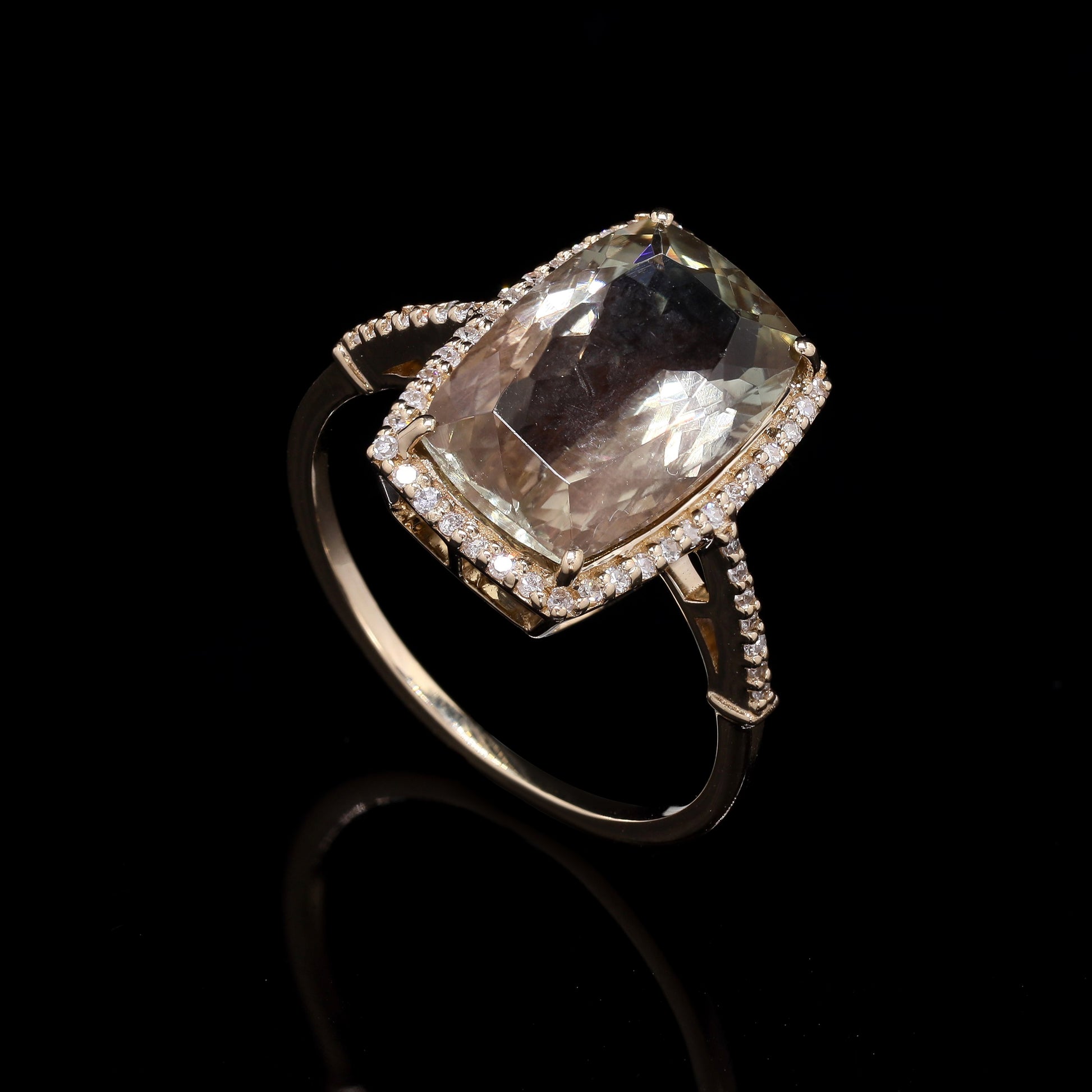 4.11 Ct Rectangular Cushion Mixed Cut Natural Plagioclase Feldspar Sunstone 14K Gold Ring
